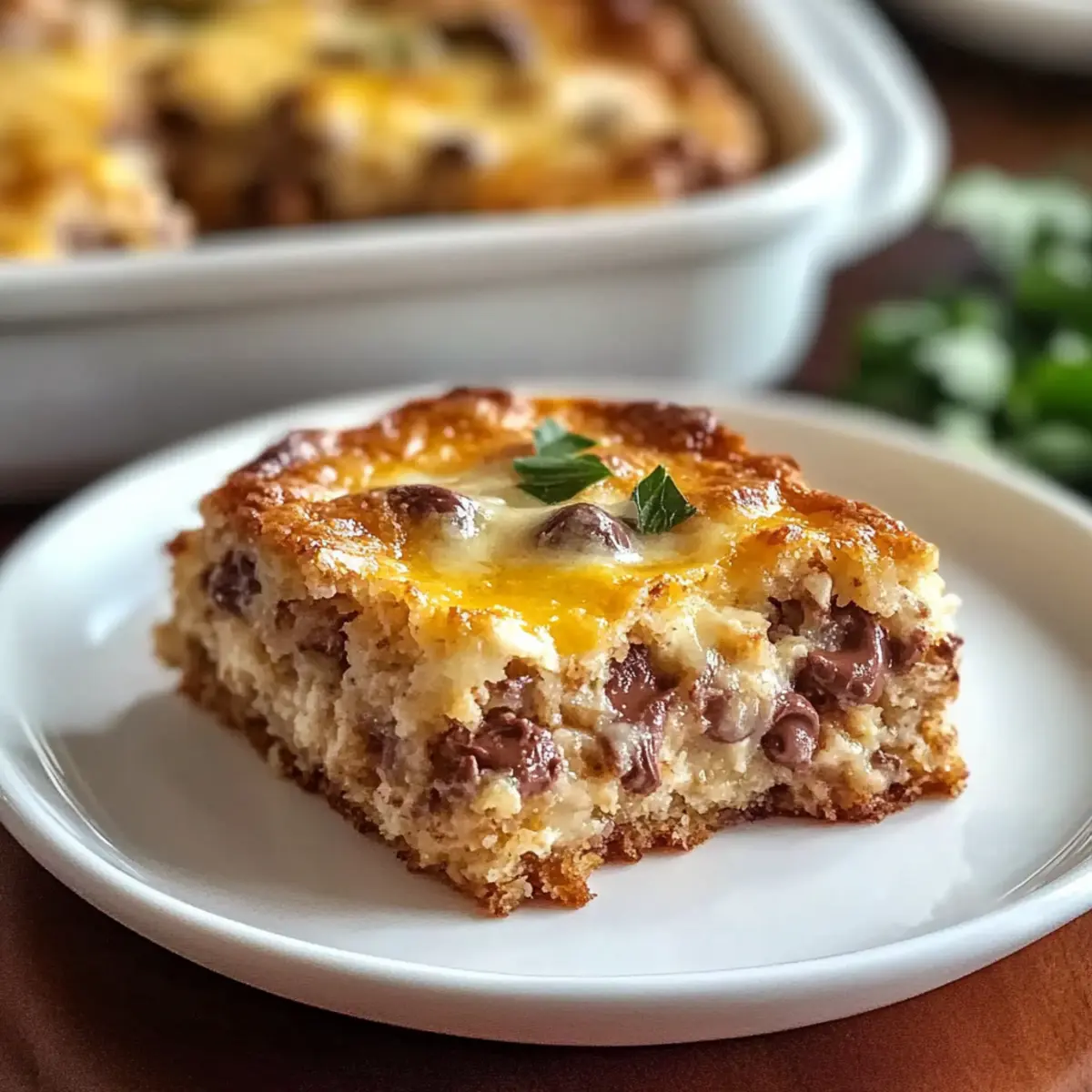 Once baked, remove the casserole from the oven and let it cool for about 5–10 minutes before slicing. This cooling time helps the layers set, making it easier to serve. Cut into squares and enjoy while warm, either on its own or with your favorite breakfast sides. Each bite is a comforting reminder of cozy mornings around the table!