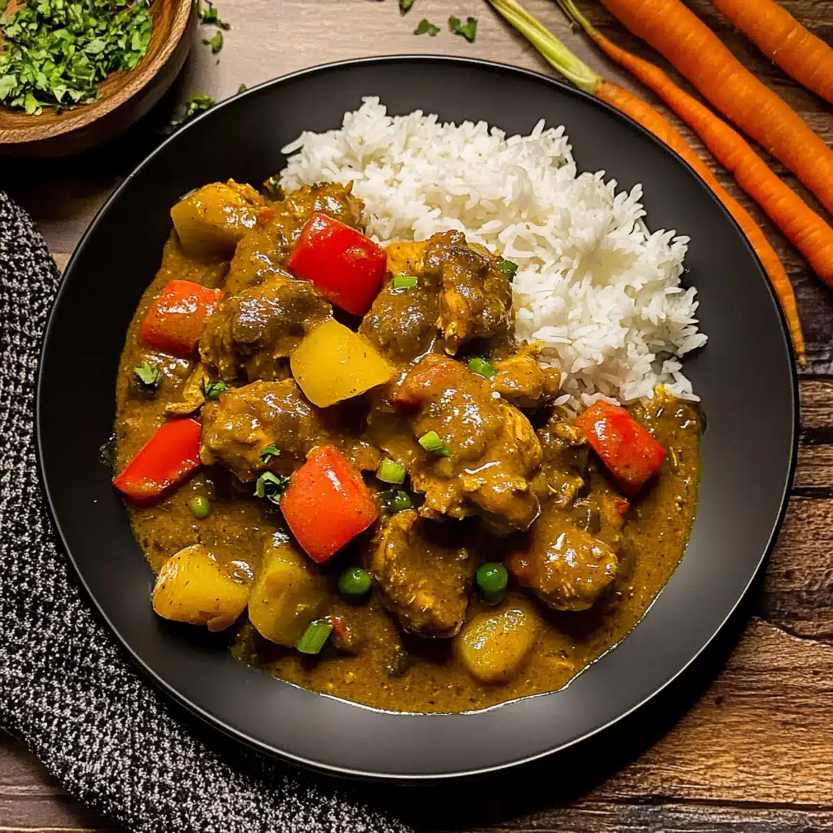 Preparing your Authentic Jamaican Curry Chicken in advance can make busy weeknights a breeze! You can marinate the chicken with the browning sauce and seasonings up to 24 hours in advance. Just cover the bowl tightly and refrigerate to deepen the flavors. Additionally, chop your vegetables (carrots, bell pepper, green onions) the day before to save time. When you’re ready to cook, simply sauté the chicken, prepare the sauce with the caramelized curry powder, and simmer everything together. This way, you’ll have a delightful homemade meal with minimal effort, allowing the vibrant flavors to shine through, just as delicious as when prepared fresh!