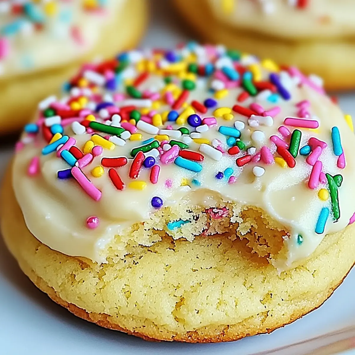 These Festive Cake Batter Cookies are ideal for meal prep enthusiasts looking to save time during busy weeks! You can prepare the cookie dough up to 24 hours in advance and refrigerate it, ensuring the ingredients stay fresh and flavors meld beautifully. Alternatively, if you plan on baking the cookies later, consider baking them without frosting and storing the unfrosted cookies at room temperature for up to 3 days. To maintain their chewy texture, store them in an airtight container. When you’re ready to enjoy your cookies, simply frost them after they’ve cooled, adding a splash of festive cheer right before serving!