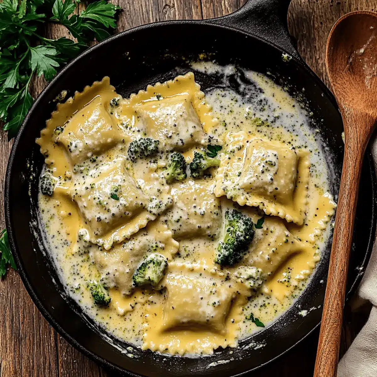 Creamy Broccoli Alfredo Ravioli for a Romantic Dinner Night