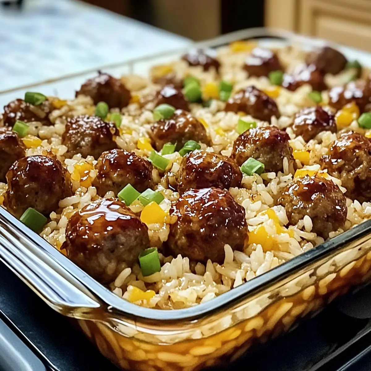 Honey Garlic Meatball Rice Bake for Cozy Family Nights