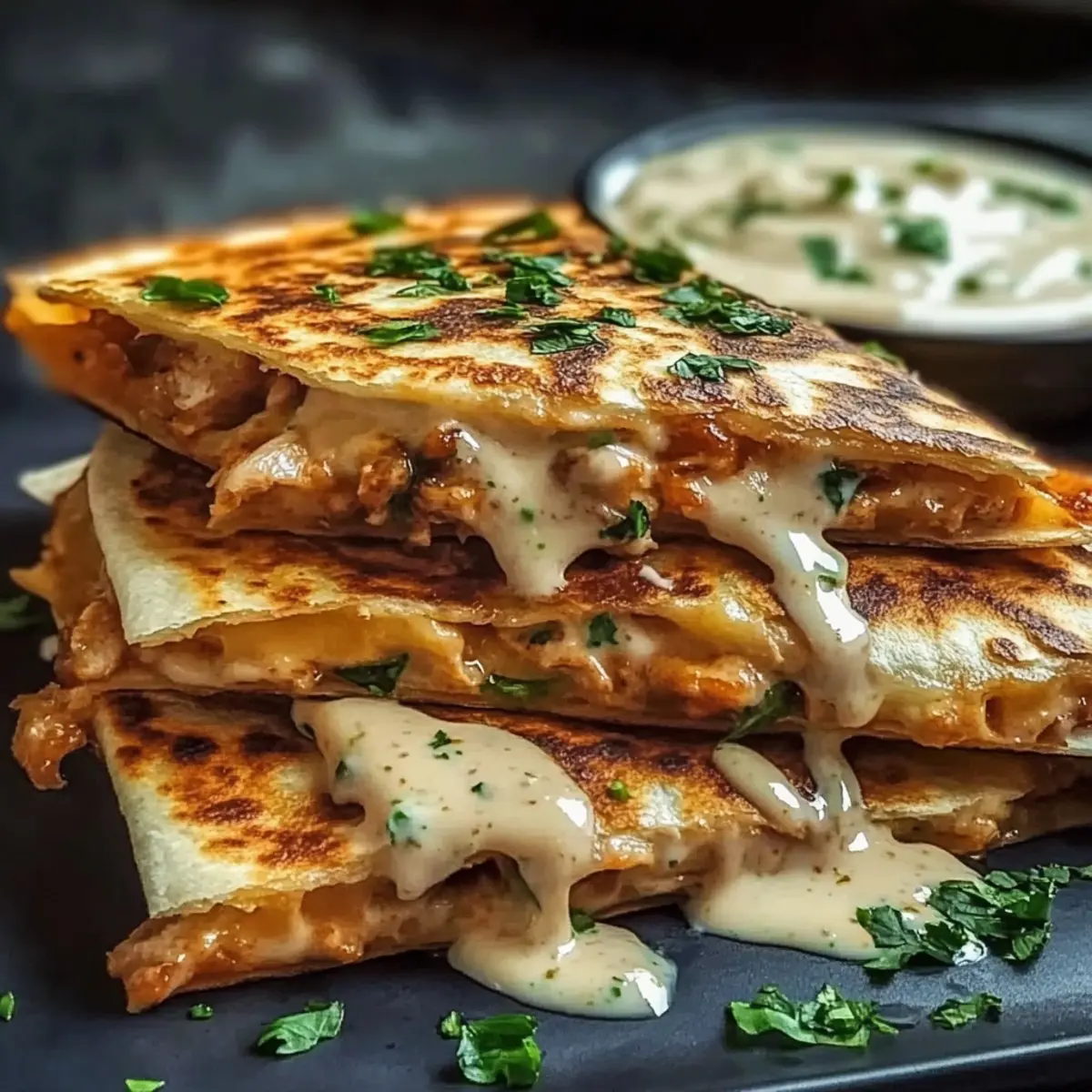 Zesty Cheesy Hot Honey Chicken Quesadillas with Jalapeño Sauce