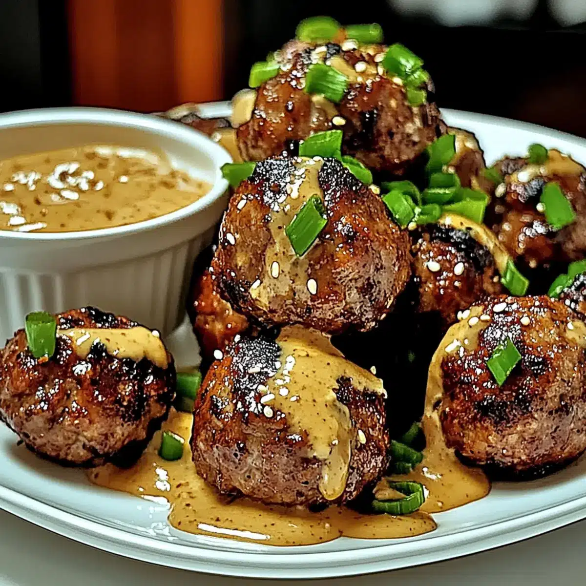Savory Korean BBQ Meatballs with Creamy Spicy Dip Delight