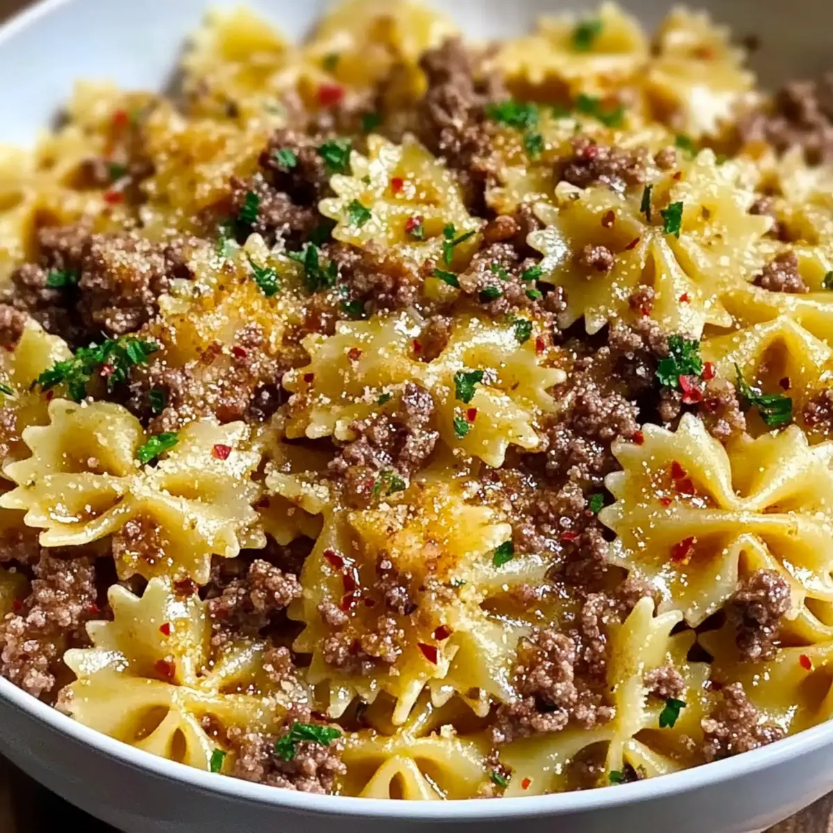 Savory Garlic Butter Bowtie Pasta with Ground Beef Recipe