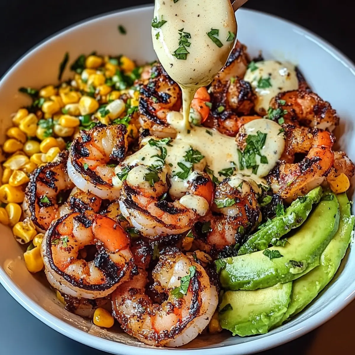 Delicious Grilled Shrimp Bowl with Avocado and Corn Salsa