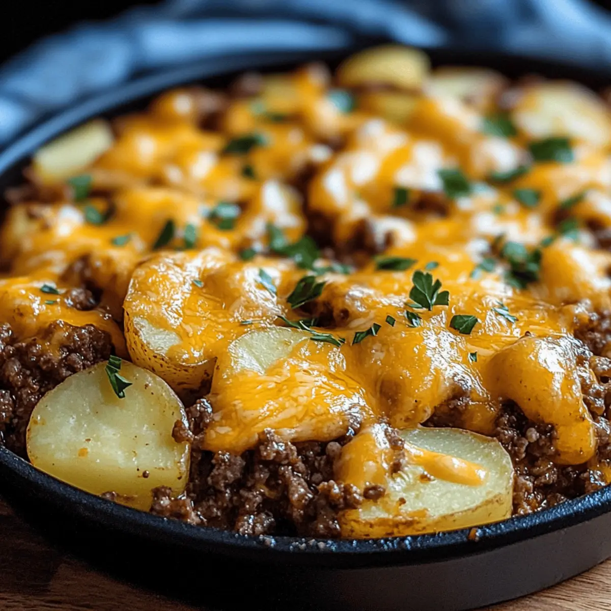 It was a chilly evening, and the kitchen was filled with the comforting aroma of sautéing onions and garlic, instantly transporting me to my childhood home. That’s when I realized it was time to whip up my go-to comfort dish: Cheesy Ground Beef & Potato Casserole. This hearty one-pan meal blends tender potatoes and savory ground beef, all smothered in gooey melted cheddar cheese. With minimal prep and cleanup, it’s a lifesaver for busy weeknights yet perfect for gatherings when you want to impress. The beauty of this recipe lies in its adaptability—you can easily personalize it by swapping ground beef for turkey or adding your favorite veggies. Ready to dive deep into this cheesy goodness? Let’s get cooking!