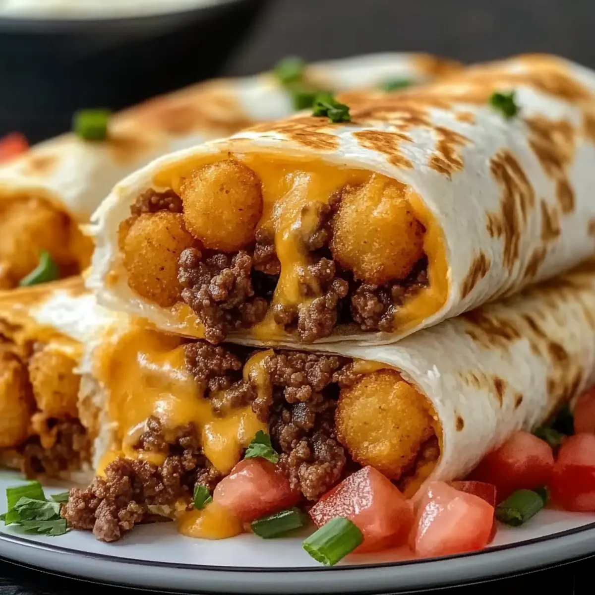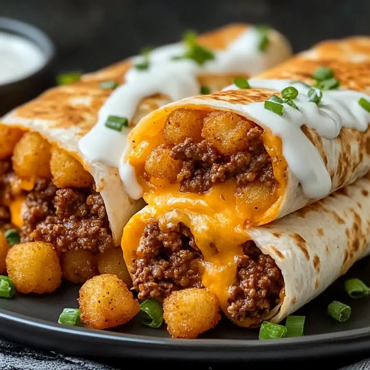 Flavor Explosion: Each bite of these burritos bursts with savory goodness, thanks to the combination of crispy tater tots and melted cheeses.