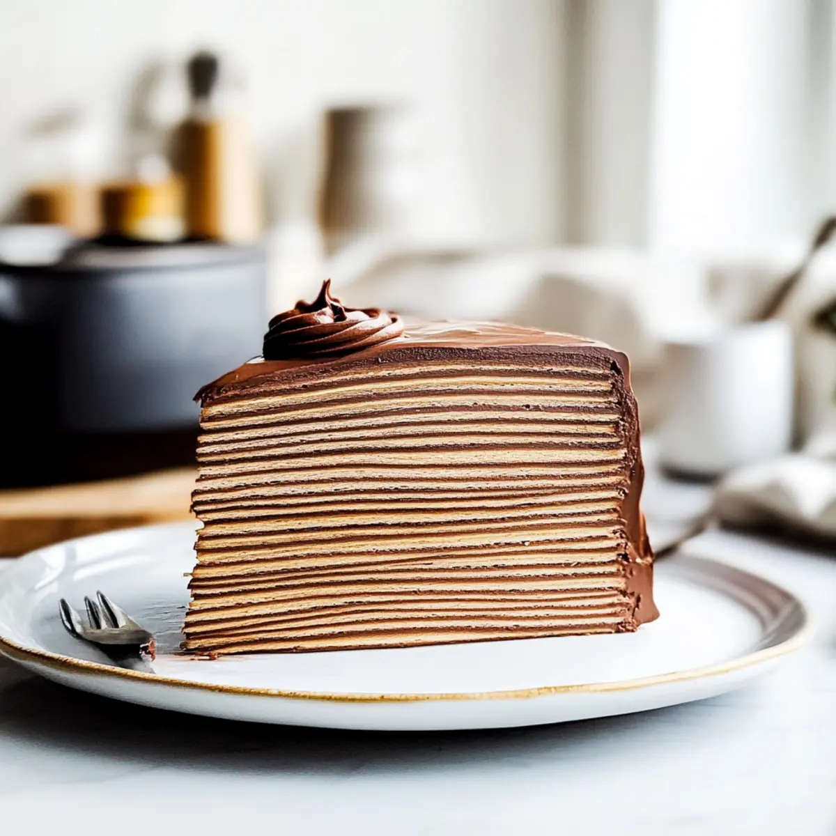 Trim Edges: For a polished look, trim the edges of the assembled cake with a serrated knife. This gives your Chocolate Crepe Cake a neat and professional appearance.