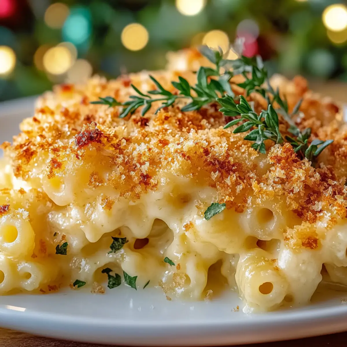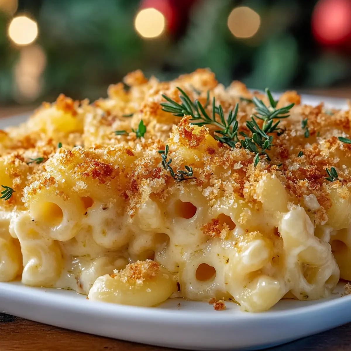 In a separate bowl, mix together 1 cup of panko breadcrumbs, 1/2 cup of grated Parmesan cheese, and a handful of chopped fresh parsley and thyme. This crispy topping will provide a beautiful contrast to the creamy interior of your Christmas Baked Mac and Cheese, giving it that festive flair.