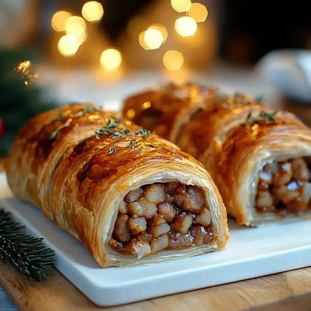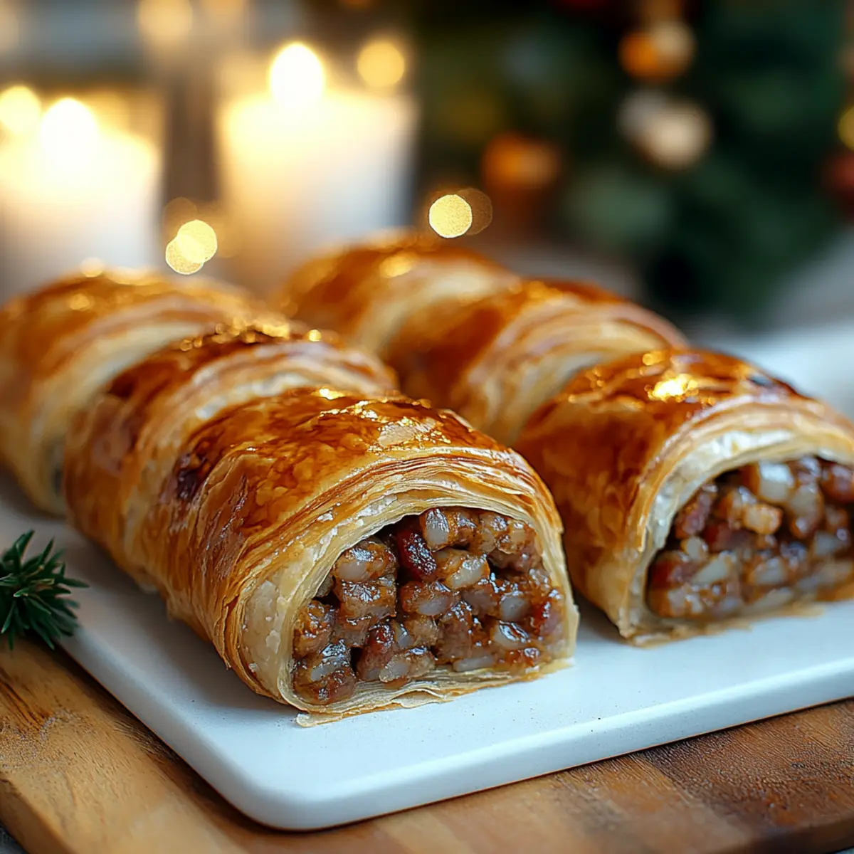 Simplicity wraps around the preparation: with just a few ingredients, you can create a festive masterpiece! Flaky Texture from the puff pastry ensures each bite is a delightful crunch, while the Savory Filling of seasoned sausage meat gives a rich flavor that captivates every palate. Quick to Prepare, they can be whipped up in under 30 minutes, making them perfect for unexpected guests or last-minute parties. Crowd-Pleasing Appeal means they’re not just food; they’re conversation starters at holiday gatherings. And if you’re looking for a variation, try adding veggies for a nutritious twist! Pair them with your favorite dipping sauce or a festive cranberry dip, and you’ve got a dish that will dazzle your guests!