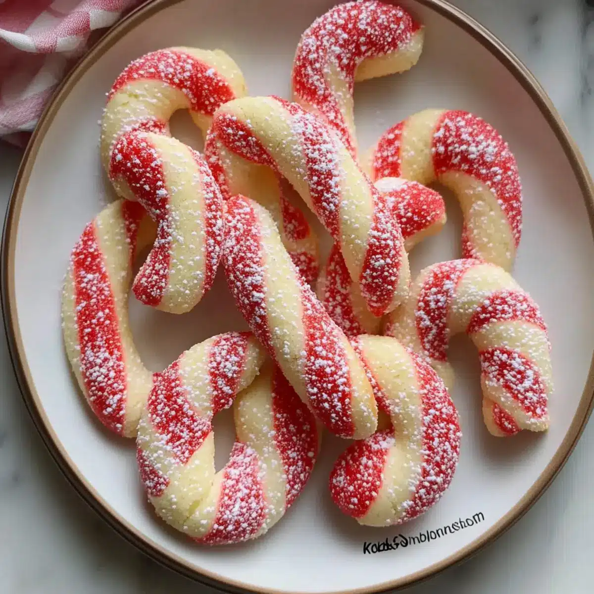 Sparkling Sugar Candy Canes: Before baking, sprinkle the cookie shapes with sparkling sugar to achieve a delightful crunch and shimmering appearance.