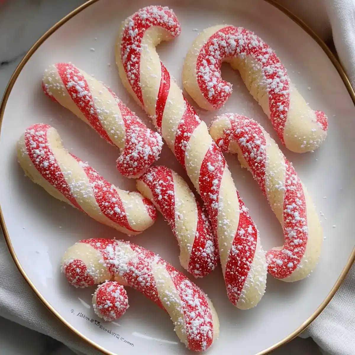 Chocolate Candy Cane Cookies: Add cocoa powder to half the dough for a rich chocolatey flavor that pairs beautifully with peppermint.