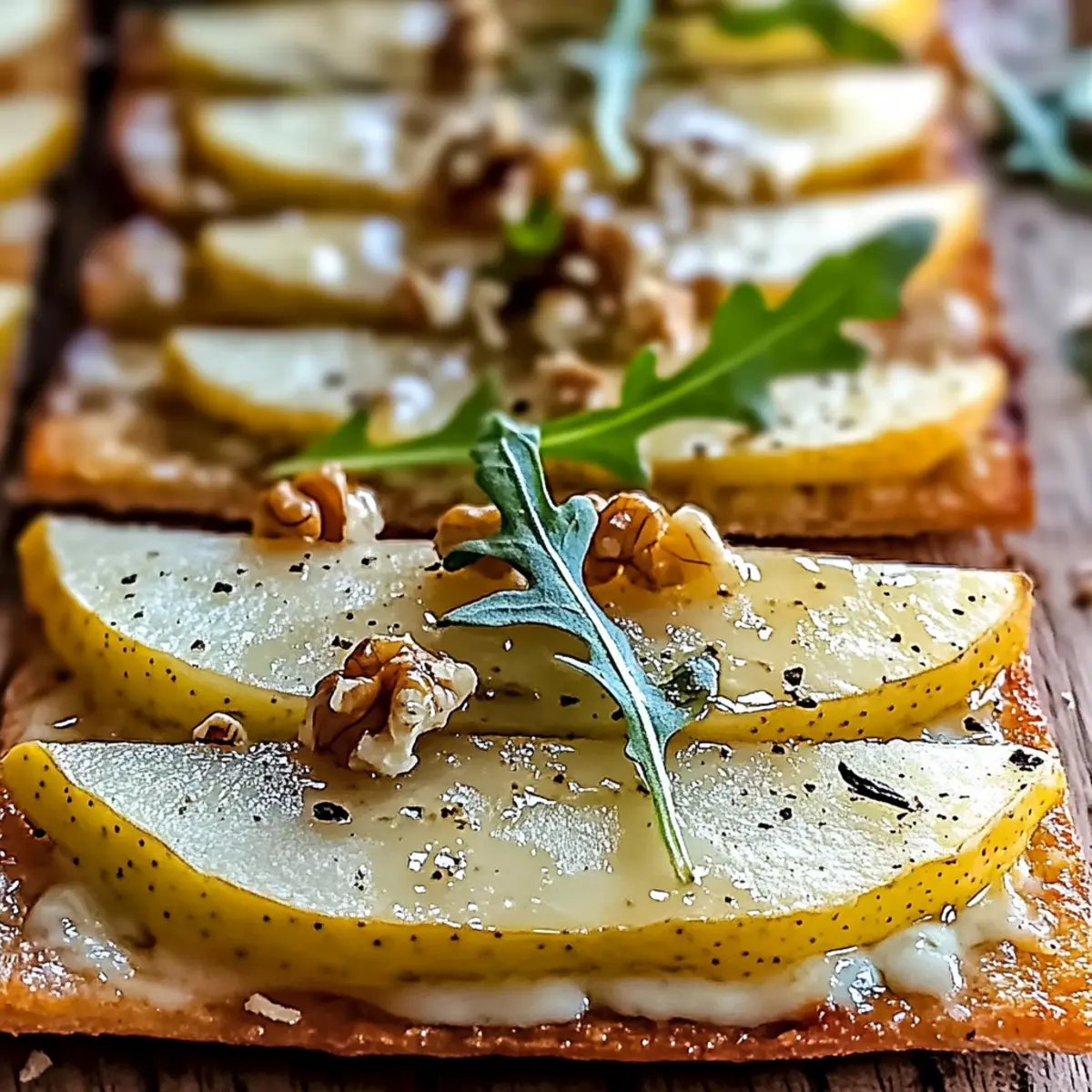 Sprinkle ¼ cup of chopped walnuts over the honey-drizzled flatbread, adding a delightful crunch. Next, toss on a handful of fresh arugula for a peppery kick, balancing the sweetness of the pears and the richness of the cheese. Finish with freshly cracked black pepper to elevate the dish further.