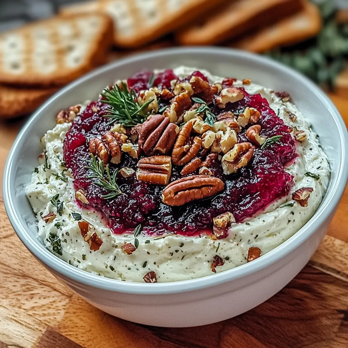 Sprinkle the cooled, toasted pecans generously over the cranberry layer, adding delightful crunch to each bite. For a finishing touch, garnish with fresh herbs like thyme or rosemary, which not only looks stunning but also enhances the dip’s flavors. Serve immediately with warm pita bread, crispy crostini, or vibrant veggie sticks, creating a crowd-pleasing snack for any gathering!