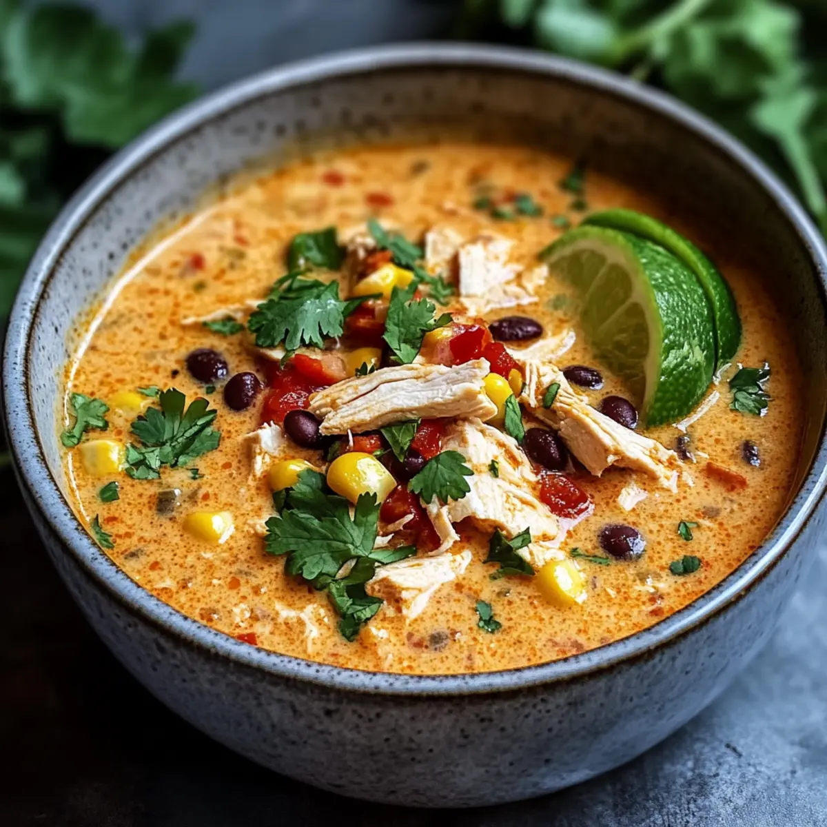 Comforting and satisfying, this Creamy Chicken Enchilada Soup delivers a cozy experience with every spoonful! Quick preparation makes it a weeknight hero, taking only minutes to whip up in one pot. Endless customization options allow you to tailor the recipe to your taste—try swapping black beans for kidney beans, or add jalapeños for a kick! Rich, creamy texture enchants everyone at the table, while the delightful aroma transports you to a Mexican fiesta. Perfect for serving with crunchy tortilla chips, this soup is sure to become a family favorite. For more delicious soup ideas, don’t miss my Dilly Chicken Soup and Creamy Cauliflower Soup!