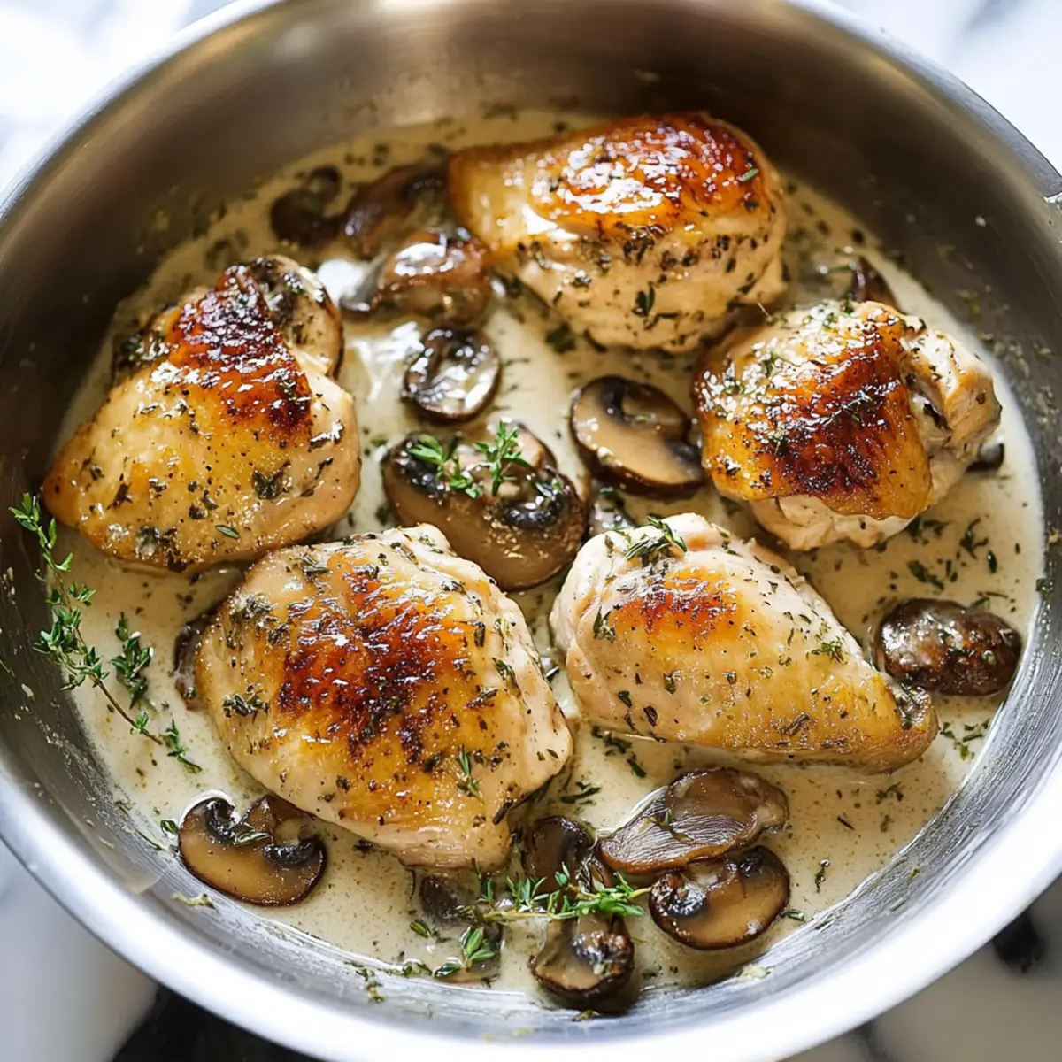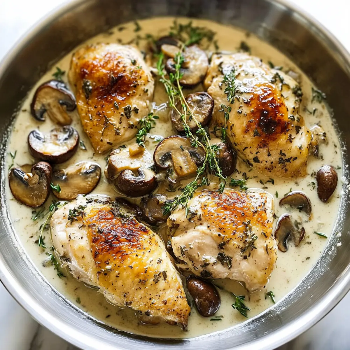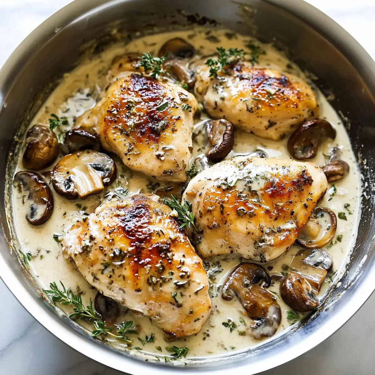 These Creamy Garlic Herb Chicken preparations are perfect for busy weeknights! You can marinate the chicken in olive oil, salt, and pepper up to 24 hours in advance to enhance the flavor. Additionally, you can sauté the mushrooms and store them in an airtight container in the fridge for up to 3 days. To maintain quality, refrigerate the cooked components separately and reheat gently before serving. When ready to enjoy your meal, simply combine the sautéed mushrooms with the marinade and proceed with finishing the sauce as directed. This way, you’ll have delicious, homemade Creamy Garlic Herb Chicken on the table with minimal effort, just like a cozy restaurant-quality dish.
