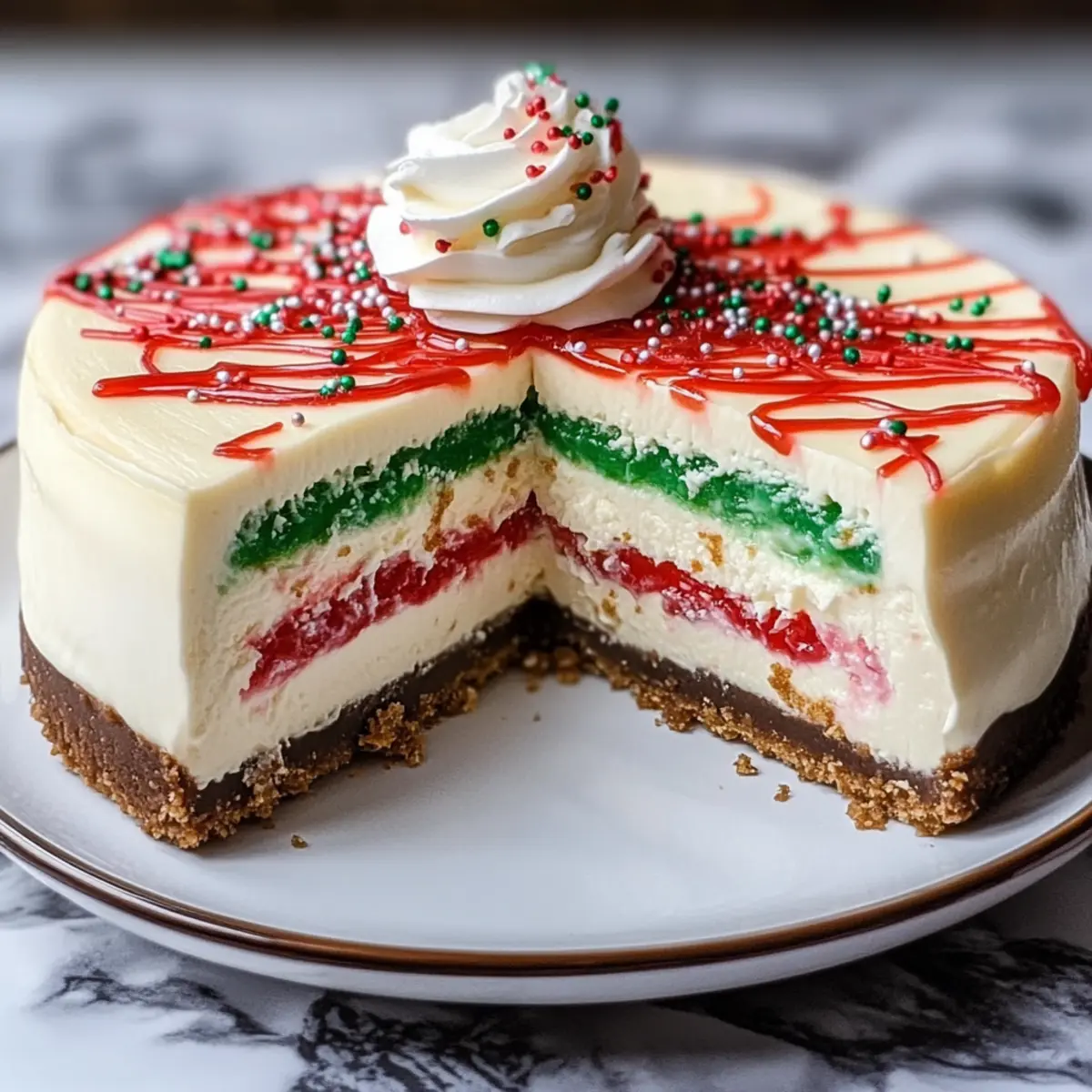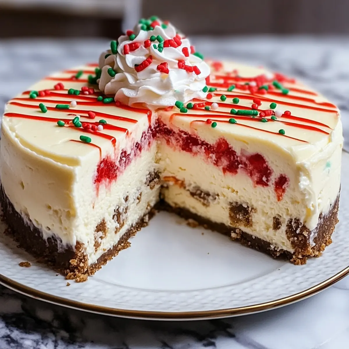 For a festive touch, I recommend topping your cheesecake with extra whipped cream and colorful sprinkles. You can also drizzle some chocolate sauce on top for added sweetness and a beautiful presentation!