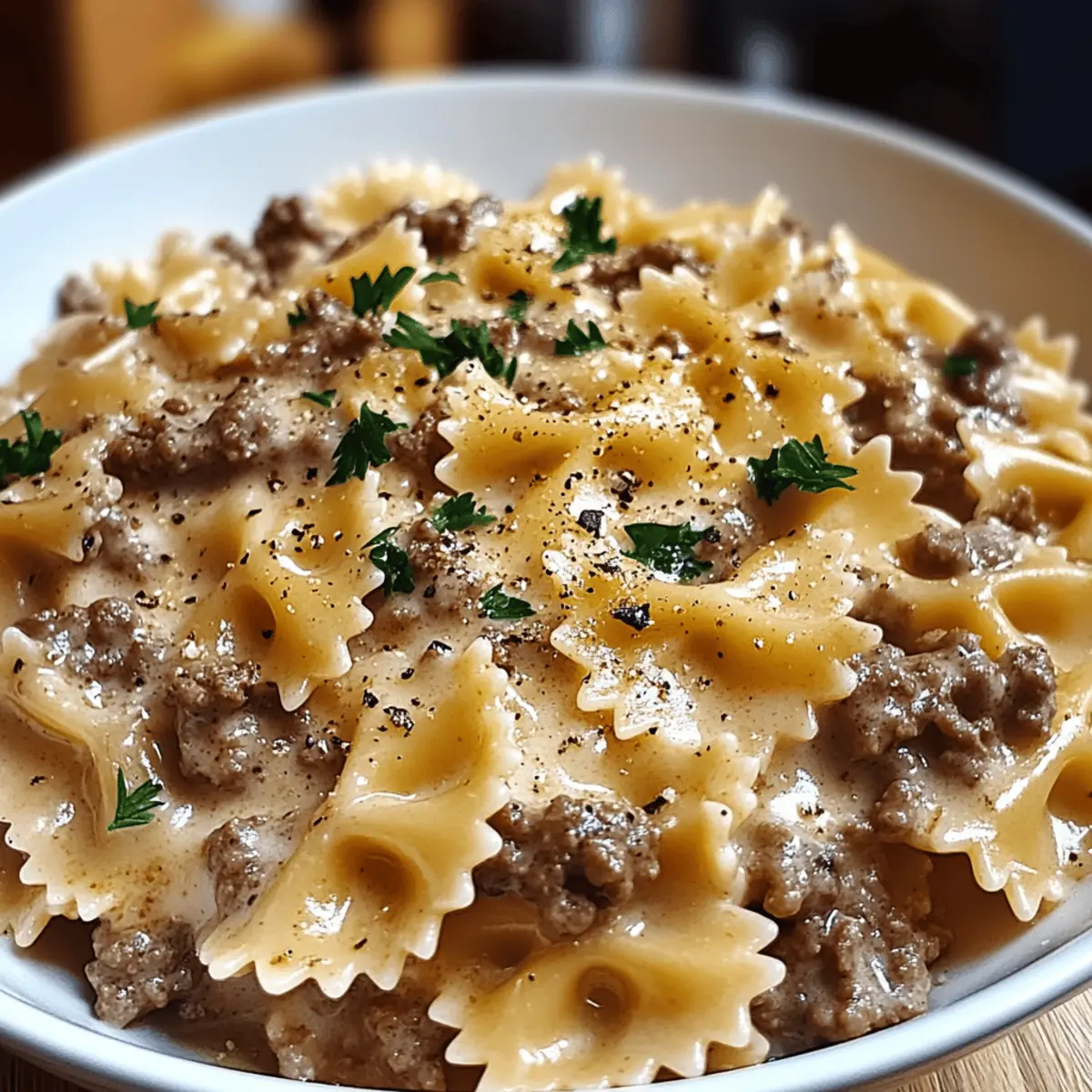 Comforting, this Creamy Parmesan Garlic Beef Bowtie Pasta is a guaranteed crowd-pleaser that unites everyone around the table. Quick and Easy, you can whip it up in under 35 minutes, making weeknight dinners a breeze. Kid-Friendly, its rich, cheesy sauce appeals to young taste buds, while adults will love the savory depth of flavor. Versatile, feel free to mix in veggies like spinach or broccoli for a nutrient boost, or even substitute beef for lentils for a vegetarian option. This dish embraces comfort food at its finest, creating delicious moments to cherish with your loved ones!