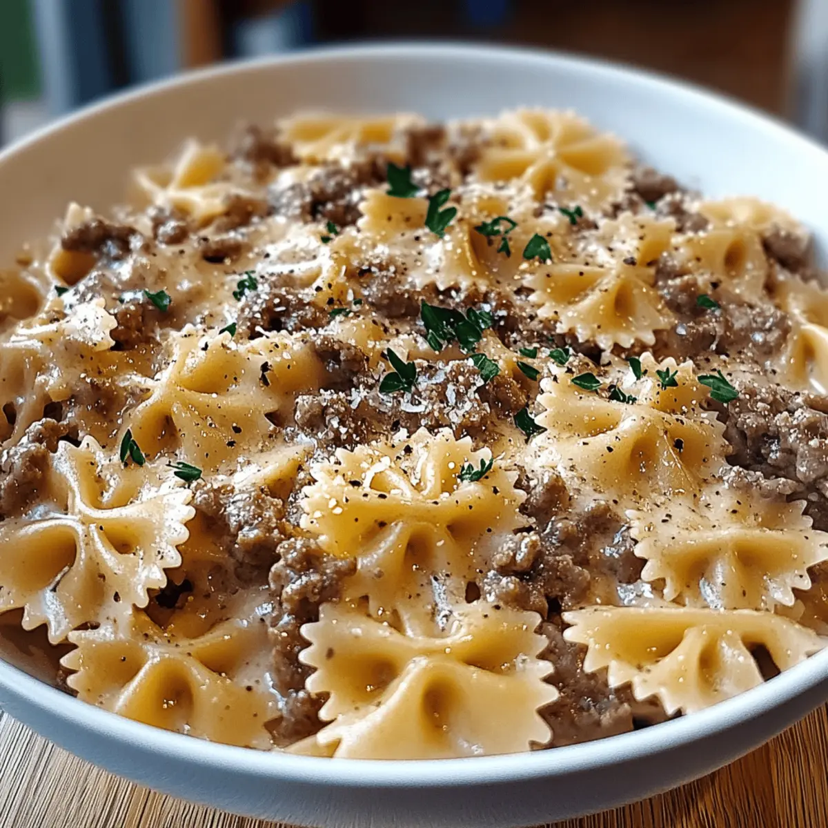 As I stood in my kitchen, the tantalizing aroma of garlic and simmering beef filled the air, instantly transporting me back to family dinners where warmth and laughter echoed around the table. That’s the magic of my Creamy Parmesan Garlic Beef Bowtie Pasta—a dish that wraps you in comfort and coziness with every bite. Perfect for those busy weeknights, this creamy pasta comes together in under 35 minutes, making it an ideal quick dinner option. It’s a delightful treat that both kids and adults crave, combining al dente bowtie pasta with a rich, velvety Parmesan sauce and seasoned ground beef. Imagine not only satisfying hungry bellies but also creating lasting memories around the dinner table. Are you ready to discover how to whip up this delicious comfort food?