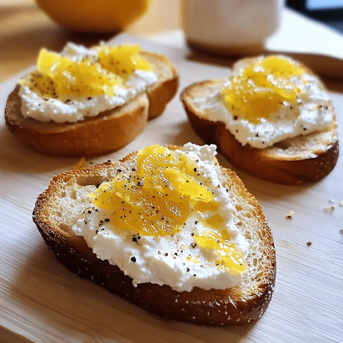 These Crispy Challah Bruschetta with Zesty Lemon Ricotta are perfect for meal prep, allowing you to whip them up easily during busy weeks! You can prepare the lemon ricotta mixture up to 3 days in advance; simply store it in an airtight container in the refrigerator to keep it fresh. The challah can be sliced and toasted the day before, then stored in an airtight bag at room temperature to maintain its crunchiness. When you’re ready to serve, just spread the ricotta on the toasted bread, drizzle with olive oil and honey, and sprinkle with salt for the same delightful flavors as freshly made bruschetta! This way, you can enjoy gourmet flair with minimal effort!