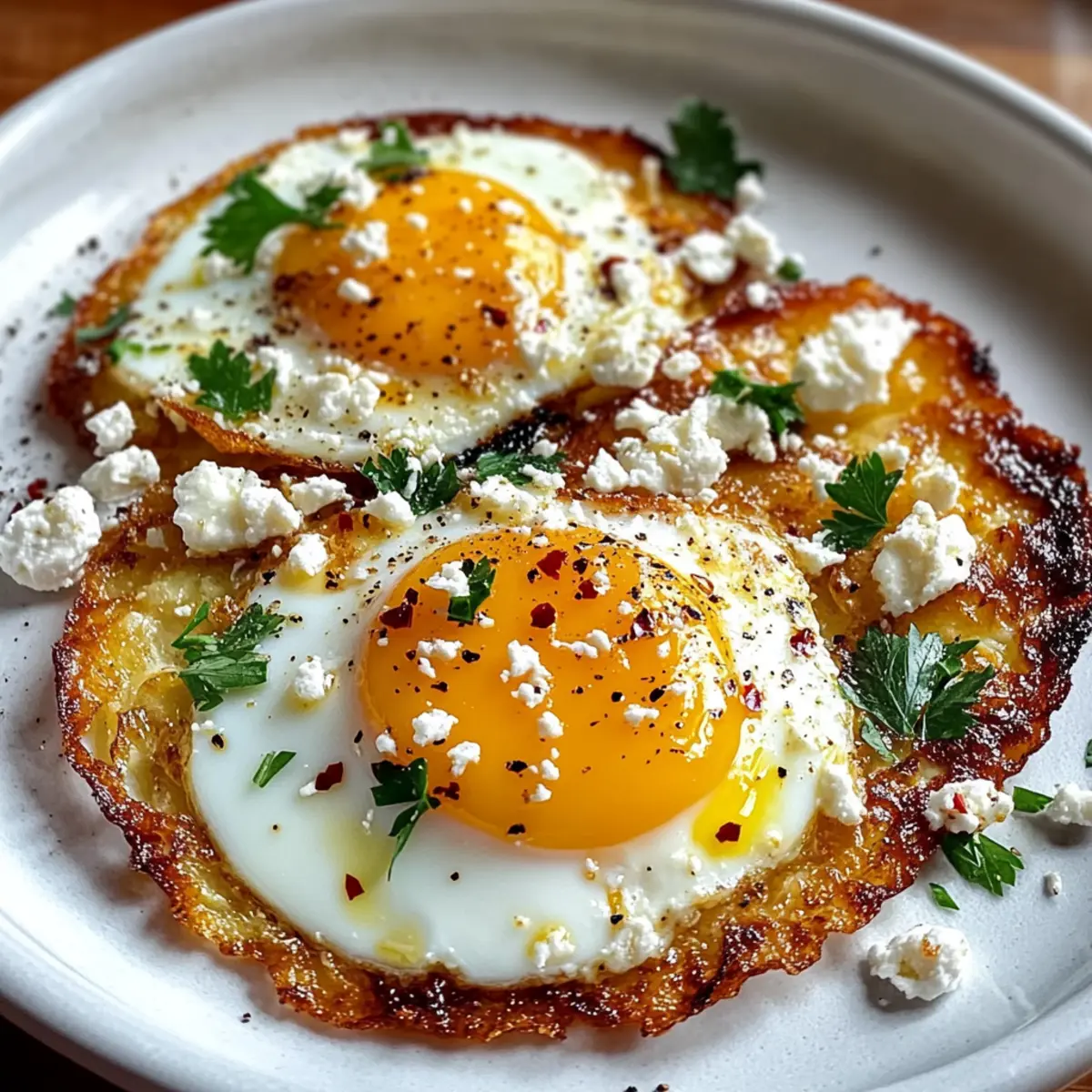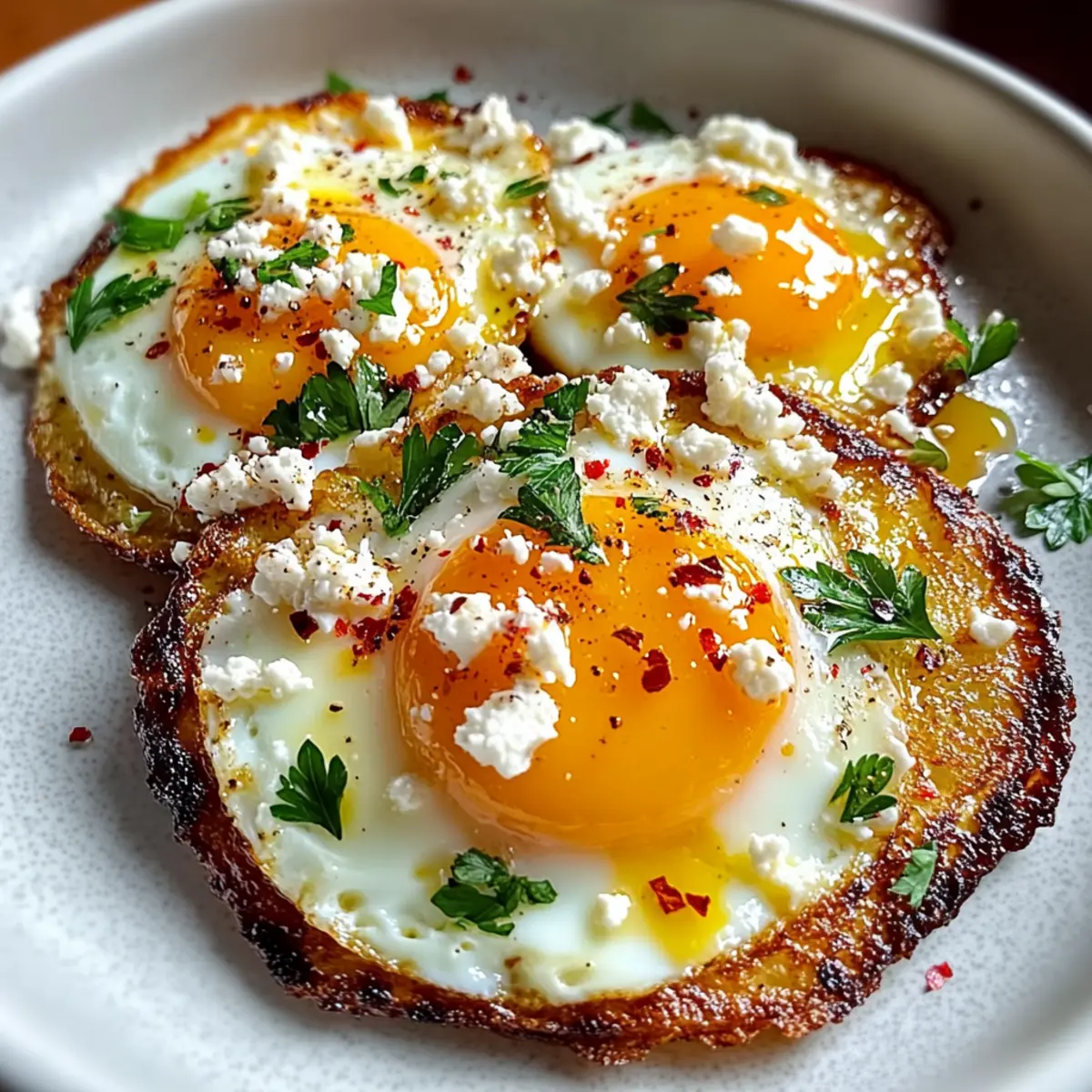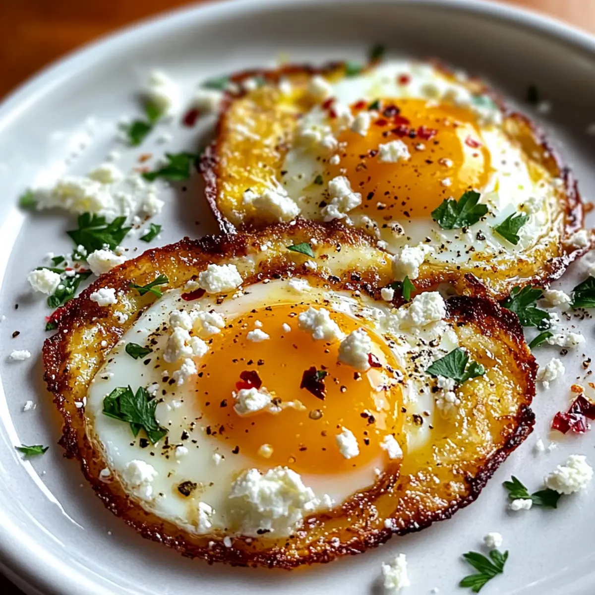 For an extra touch, sprinkle chopped parsley and red pepper flakes over your Crispy Feta Fried Eggs just before serving. This optional step adds freshness and a hint of heat that elevates the dish even further. The vibrant colors of the garnishes will make your meal visually stunning.