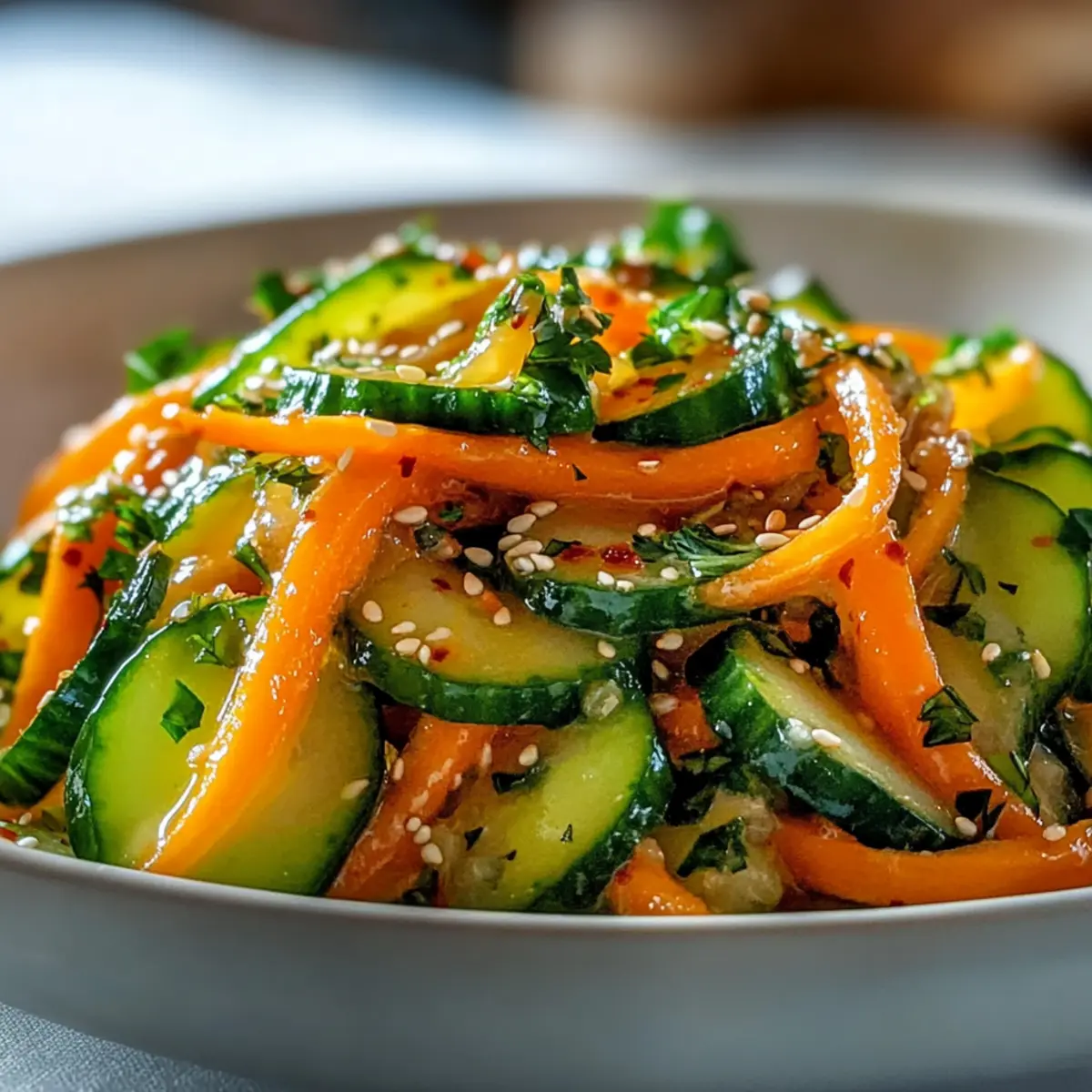 With these simple ingredients, you’ll create a Cucumber Carrot Salad that’s not only delicious but also rich in flavor and zest. Enjoy the burst of freshness in every bite!