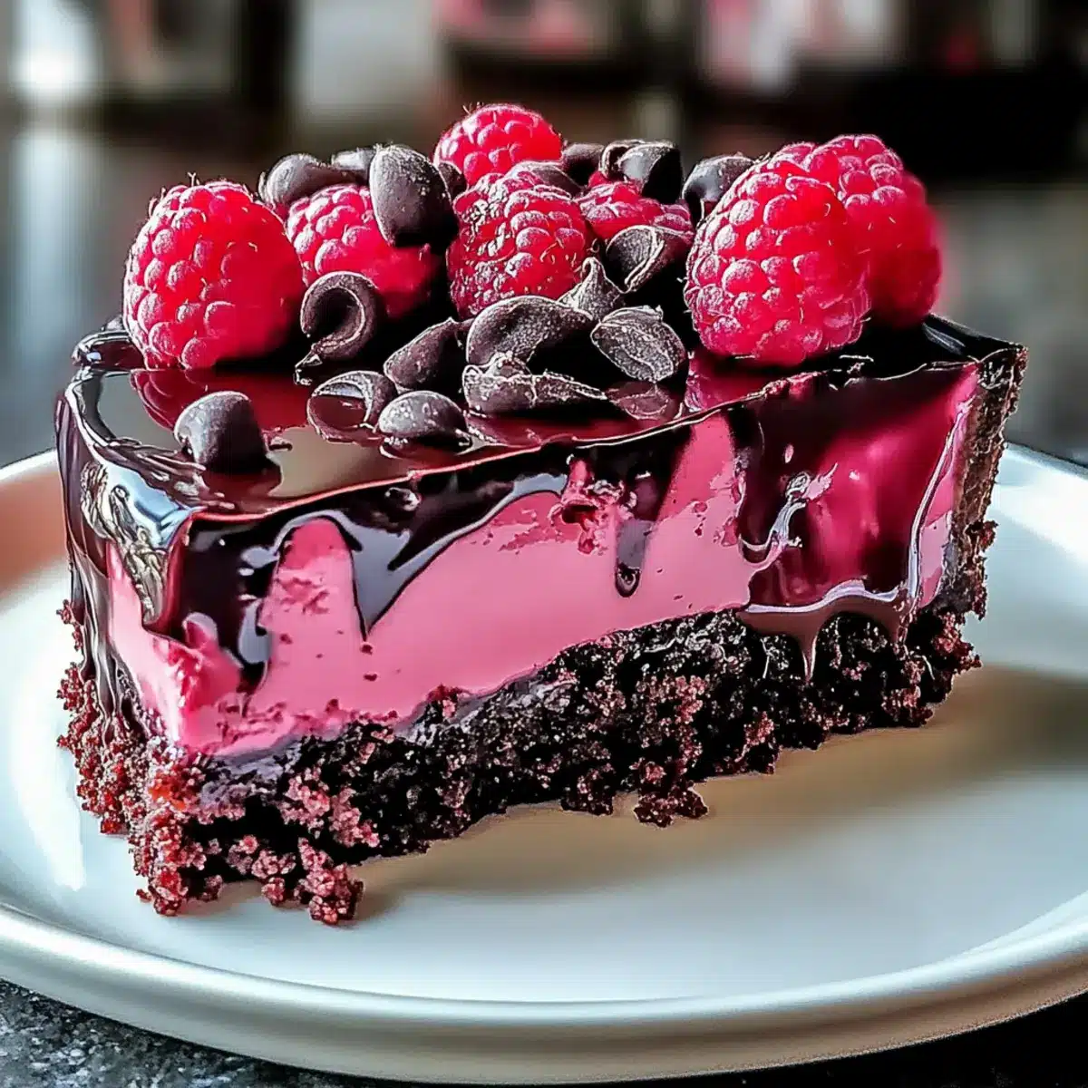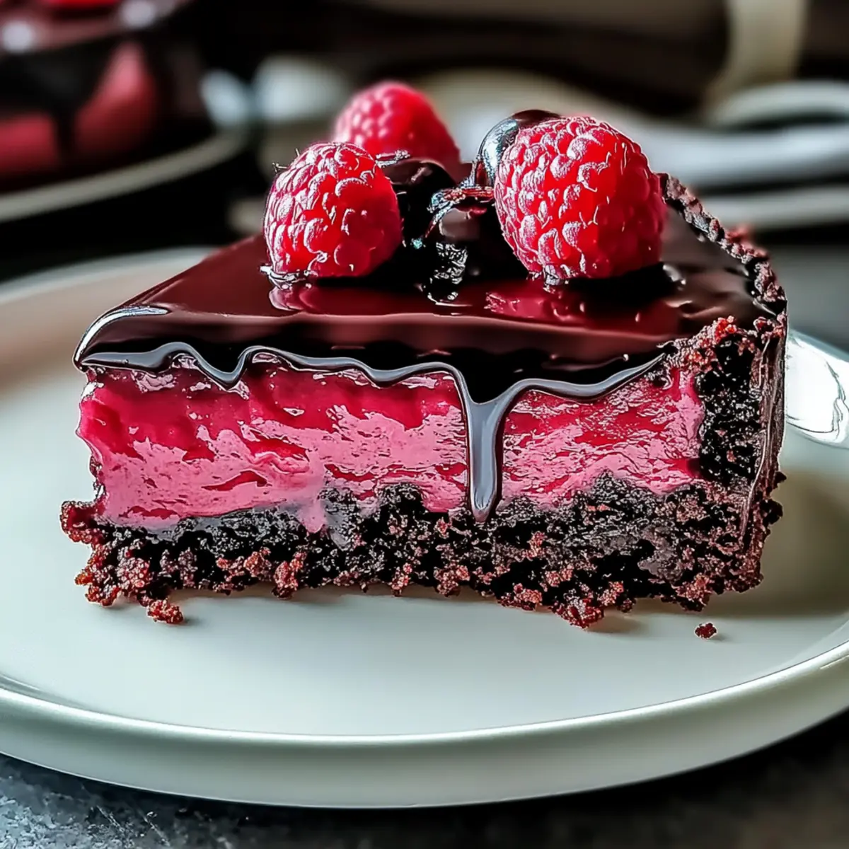 Indulge in Luxurious Dark Chocolate Raspberry Cheesecake