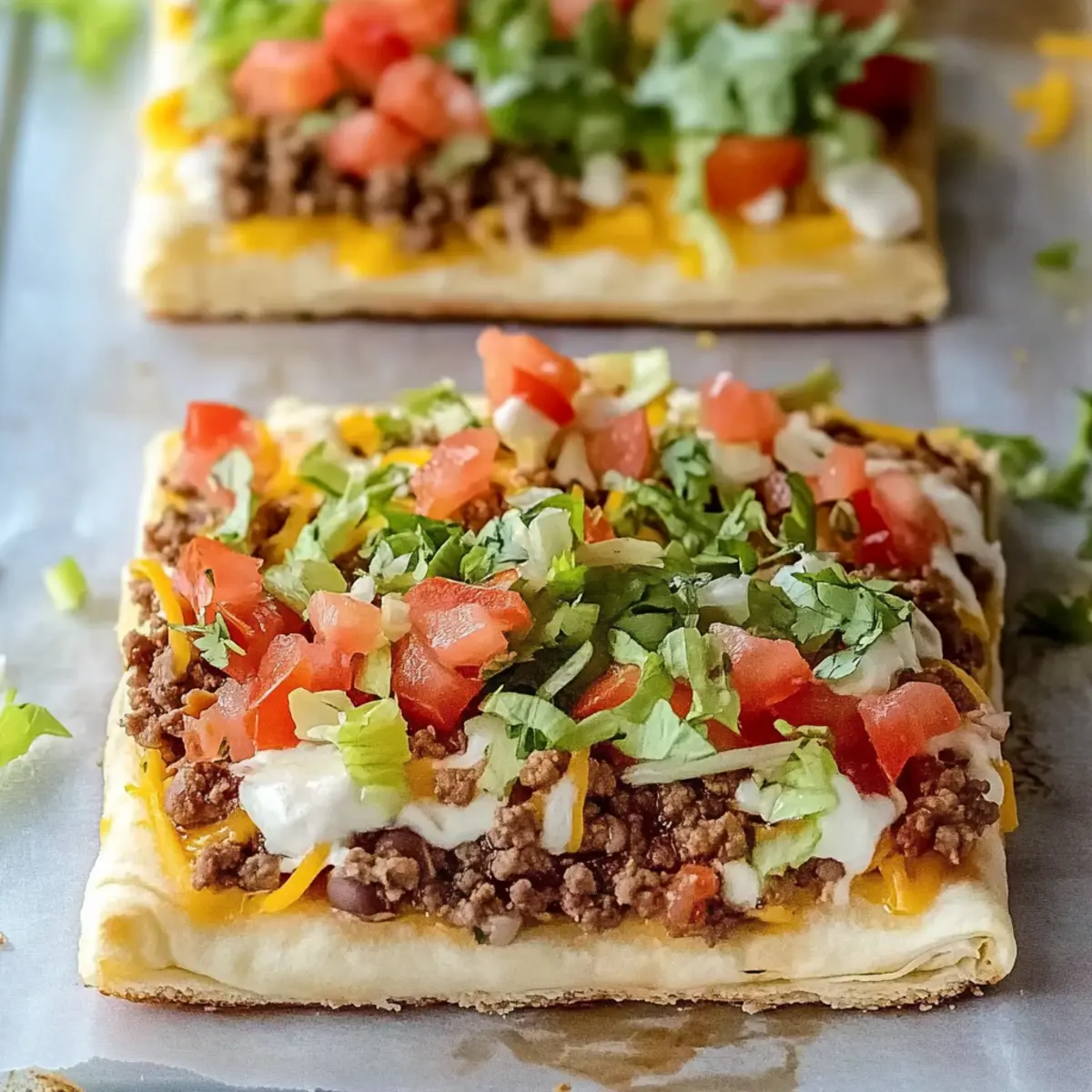 Cut your Easy Crescent Roll Taco Pizza into squares and serve warm for the best experience. Provide additional toppings like sour cream and salsa on the side, giving everyone a chance to customize their slice. The enticing combination of flavors and textures is sure to please the whole family, making this meal a delightful addition to your weeknight dinners!