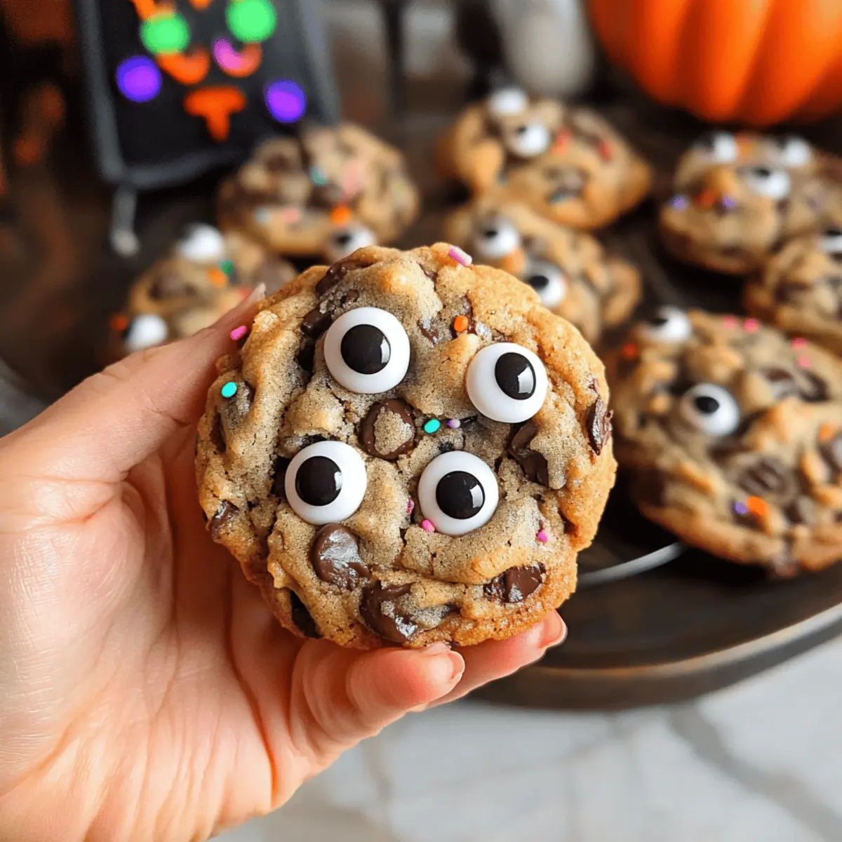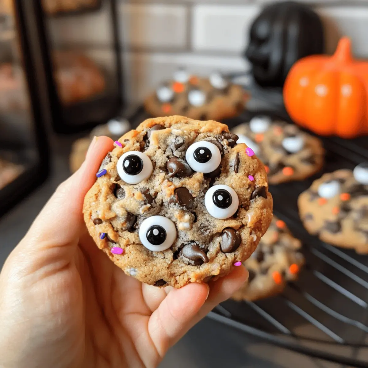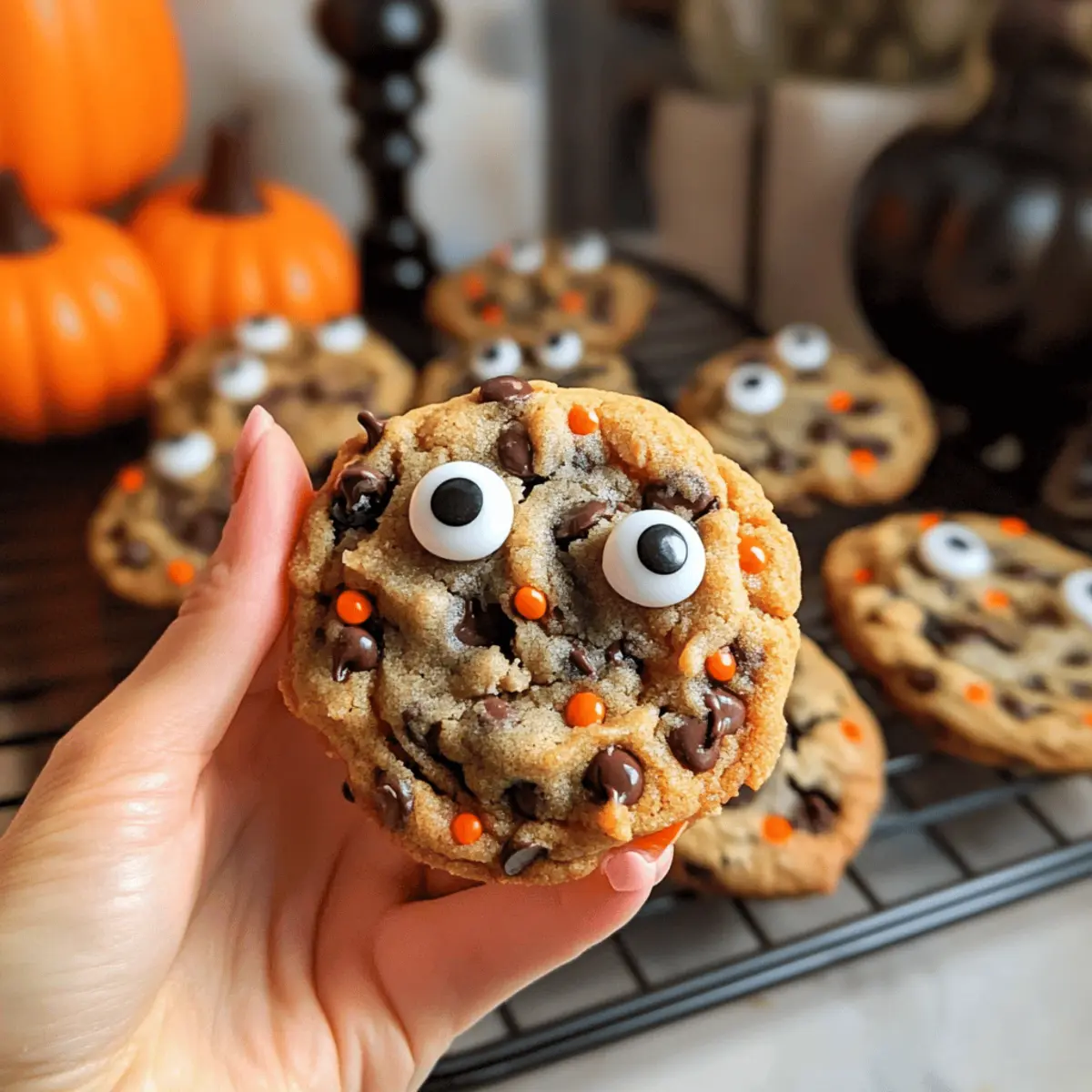 As soon as the cookies come out of the oven, gently press a few candy eyes into the warm centers of each cookie. This fun detail adds a delightful spooky touch to your Easy Halloween Cookies with Chocolate Chips. Allow the cookies to cool on the baking sheet for 5 minutes before transferring them to a wire rack to cool completely.