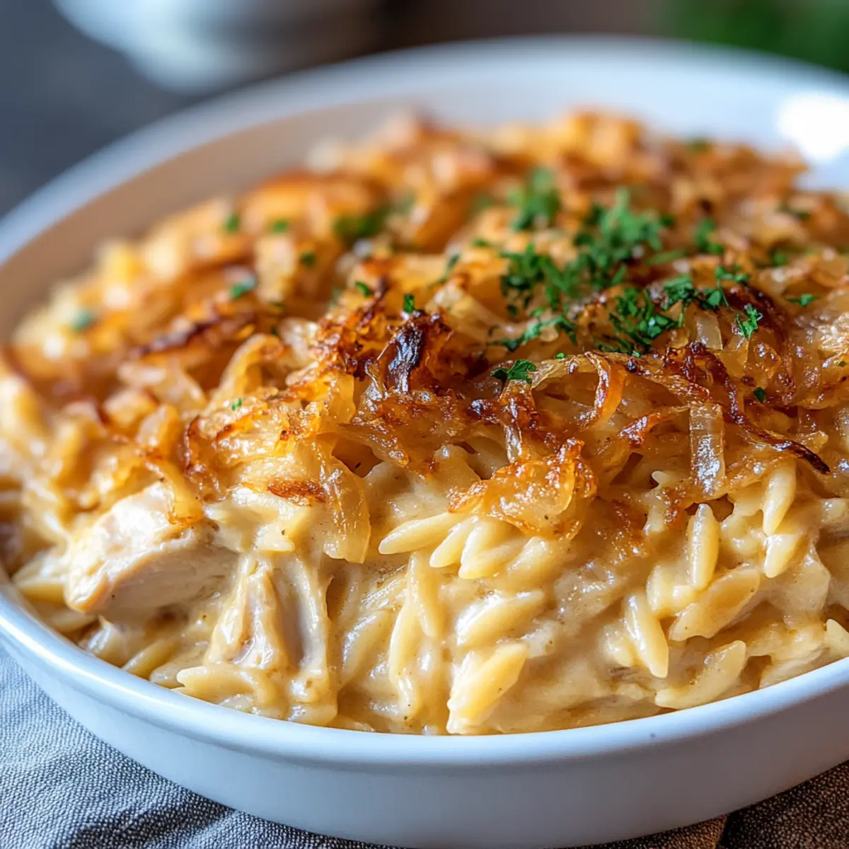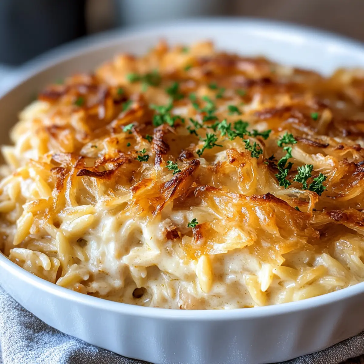 Indulge in Comfort: French Onion Chicken Orzo Casserole