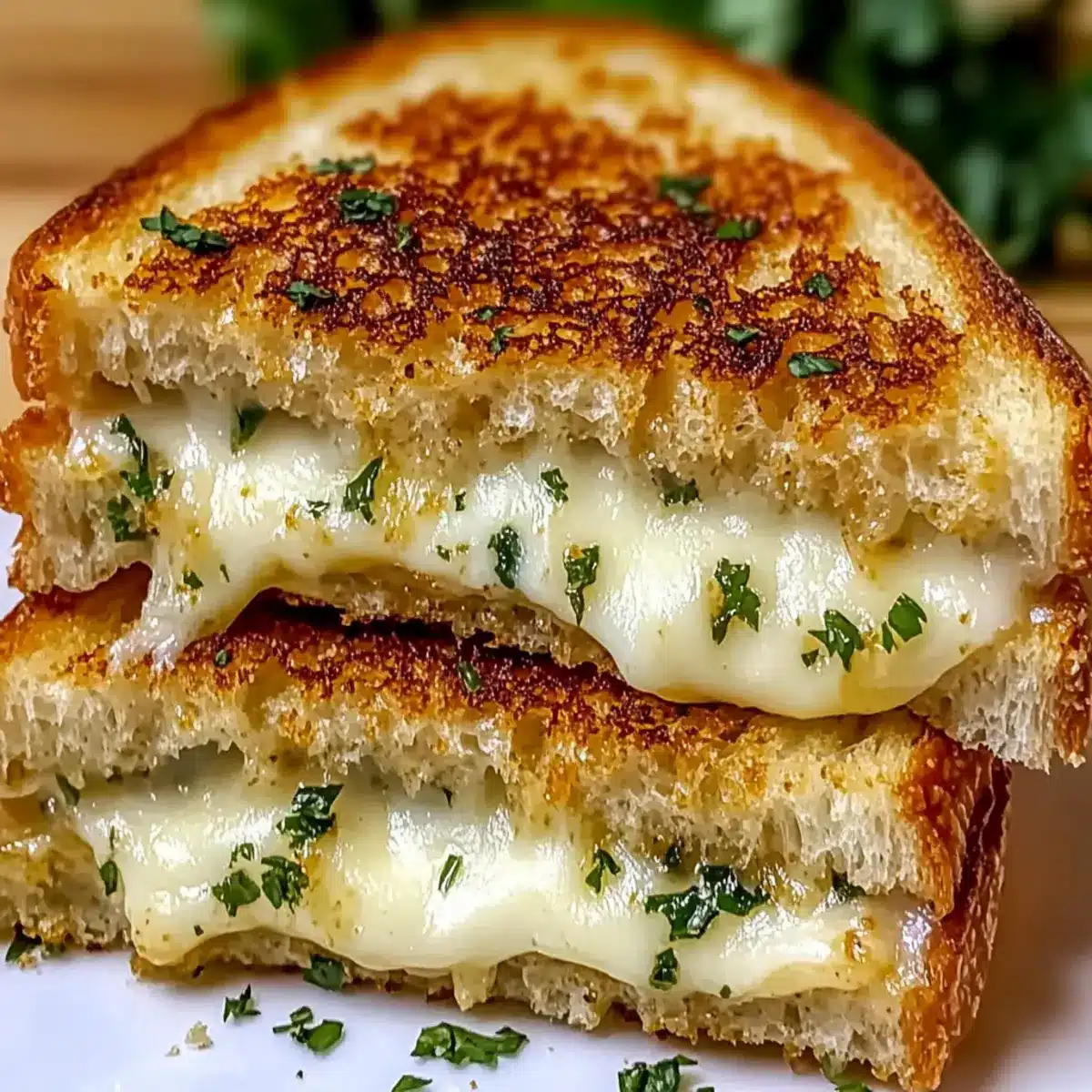The scent of garlic wafting through the kitchen always brings a smile to my face, and it’s no wonder why. There’s a certain magic in combining that aroma with gooey, melted cheese, and my Garlic Bread Grilled Cheese nails it every time. This quick lunch idea transforms standard comfort food into an extraordinary experience in just 15 minutes. The golden, crusty garlic-infused exterior provides a delightful crunch, while the rich blend of mozzarella and cheddar oozes perfection with every bite. Whether you’re running short on time or simply craving a cozy meal that feels like a warm hug, this recipe is your go-to. Plus, it’s vegetarian-friendly, making it a versatile choice for all. Have you ever craved a dish that combines speedy prep with ultimate comfort? Let’s dive in!