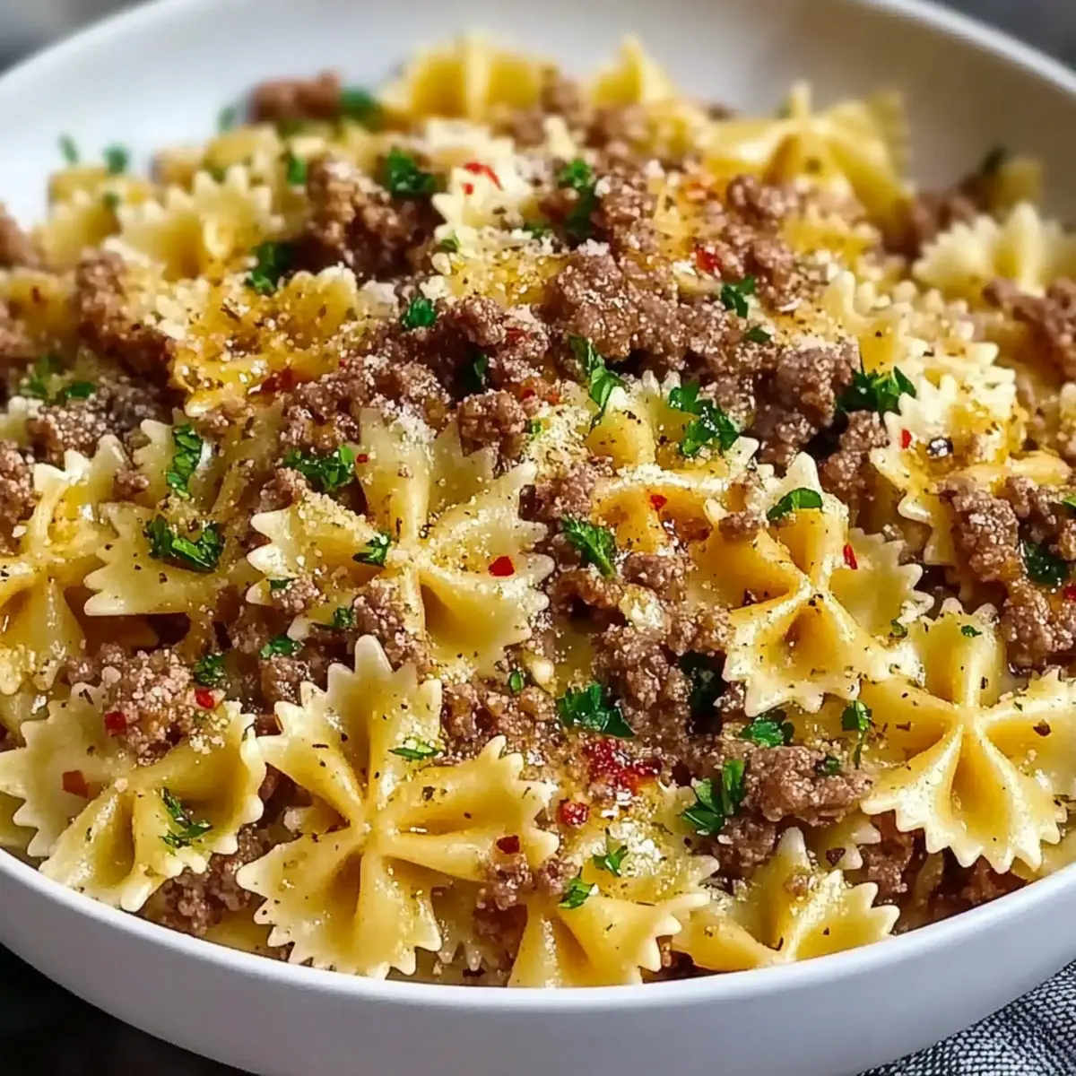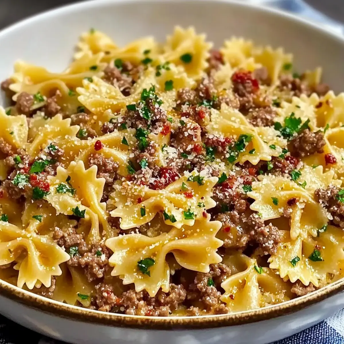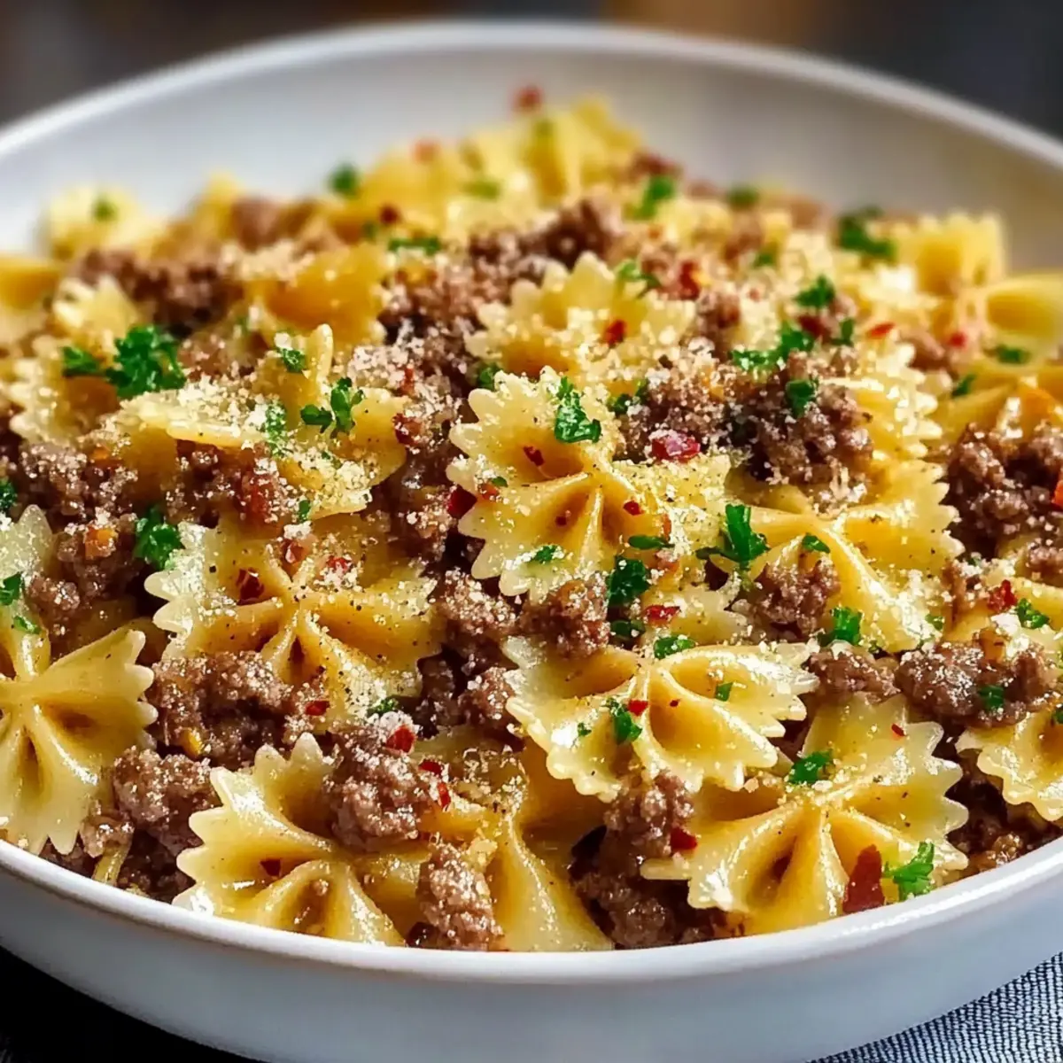 Savory Garlic Butter Bowtie Pasta with Ground Beef Recipe