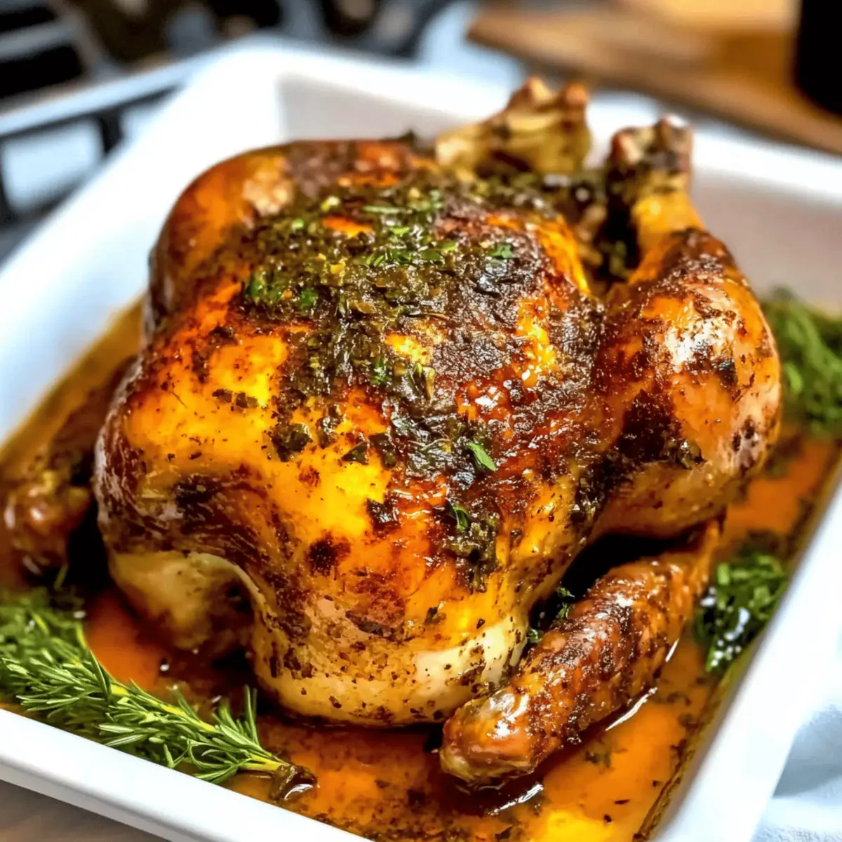 For an extra crispy finish, switch your oven to broil mode during the last 2-3 minutes of roasting. Keep a close eye on it, as broiling can quickly turn from beautifully crispy to burnt. Once done, your Garlic Herb Butter Roasted Chicken should have that irresistible golden crust!