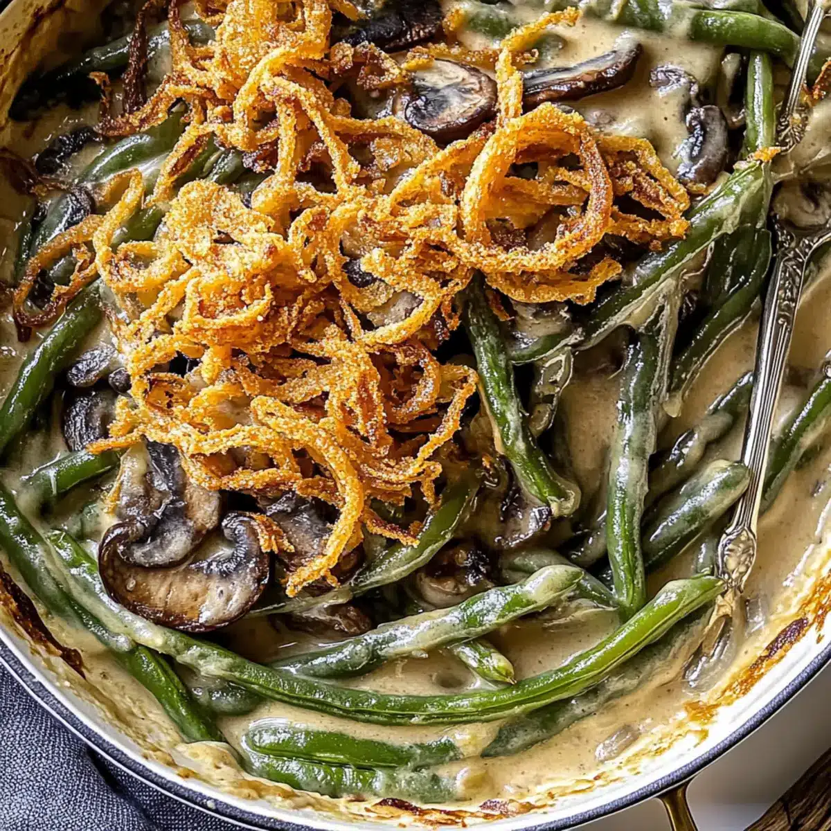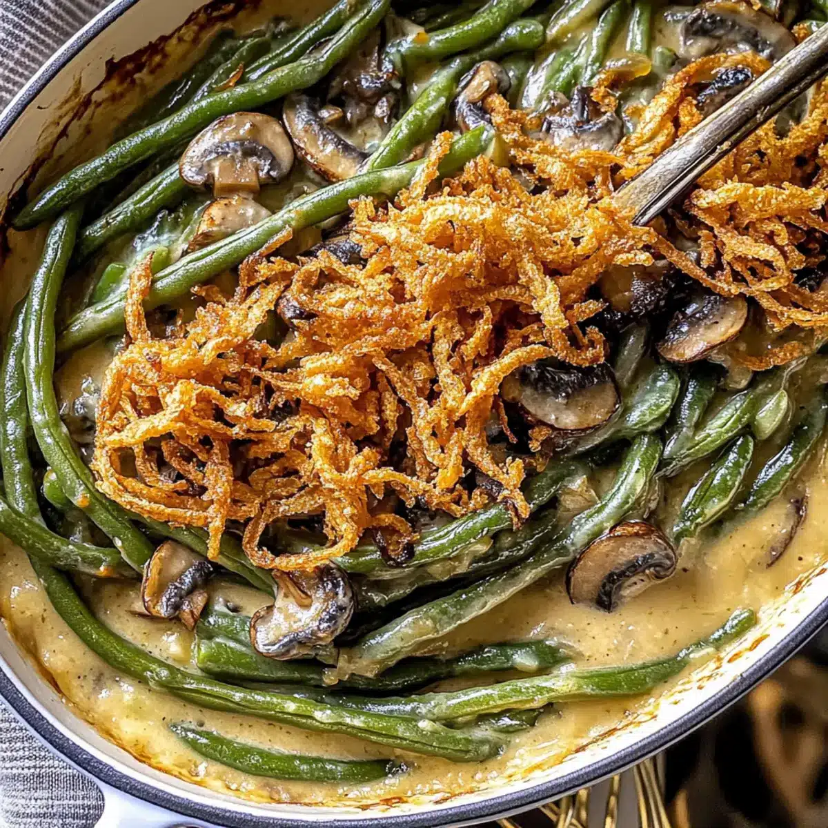 As I stood in the kitchen, the smell of sautéed mushrooms wafted through the air, coaxing memories of family gatherings and cozy dinners. This Homemade Green Bean Casserole with Creamy Mushroom Sauce isn’t just a side dish; it’s a heartwarming celebration of wholesome ingredients and love for cooking. With a rich, savory sauce made from scratch, this recipe not only elevates your meal beyond the usual, but also comes together in a flash—perfect for busy evenings or festive gatherings. What’s more, it’s vegetarian-friendly and easily adaptable to suit dairy-free diets, making it a crowd-pleaser for everyone at the table. Are you ready to whip up a dish that will soon become a cherished favorite? Let’s dive into the details!