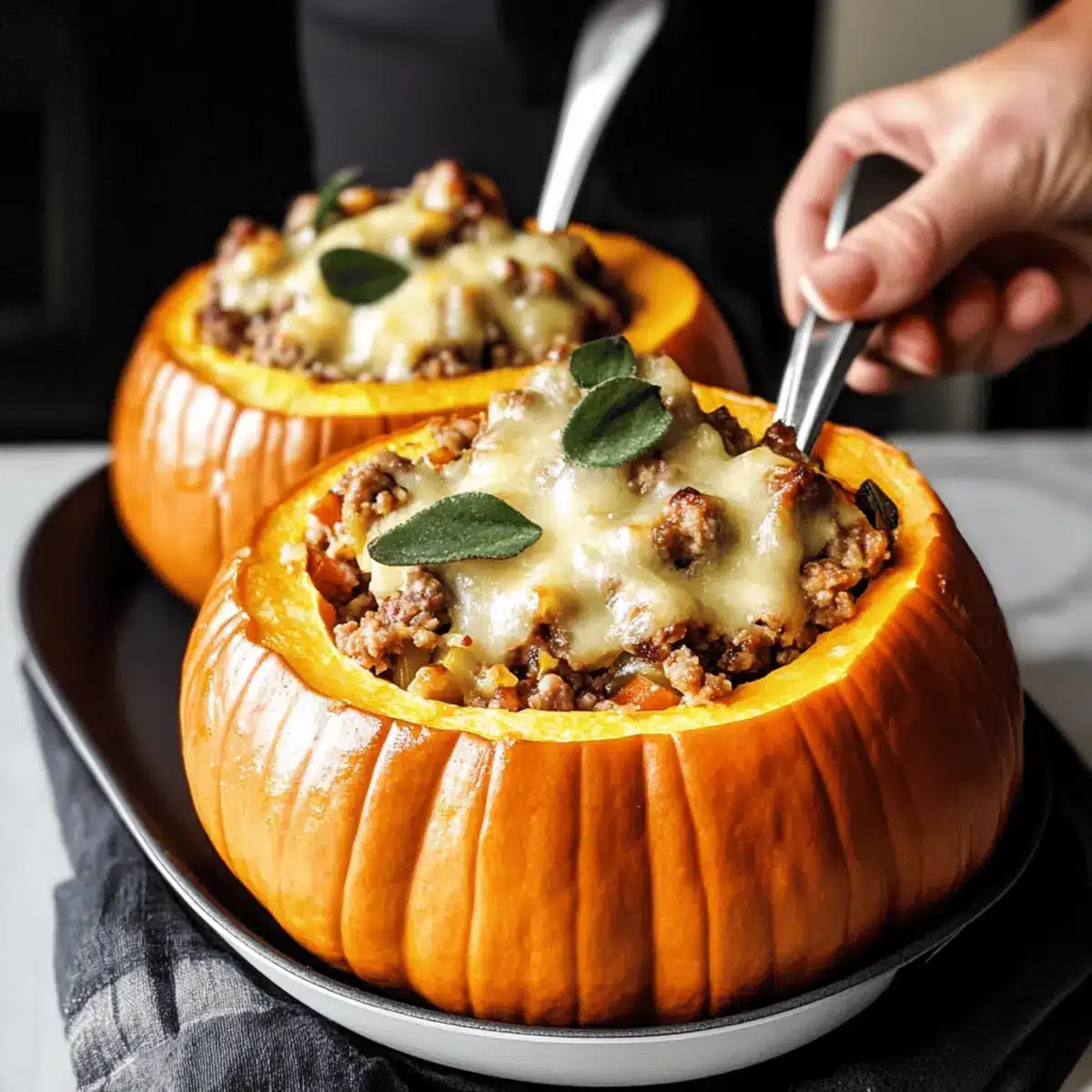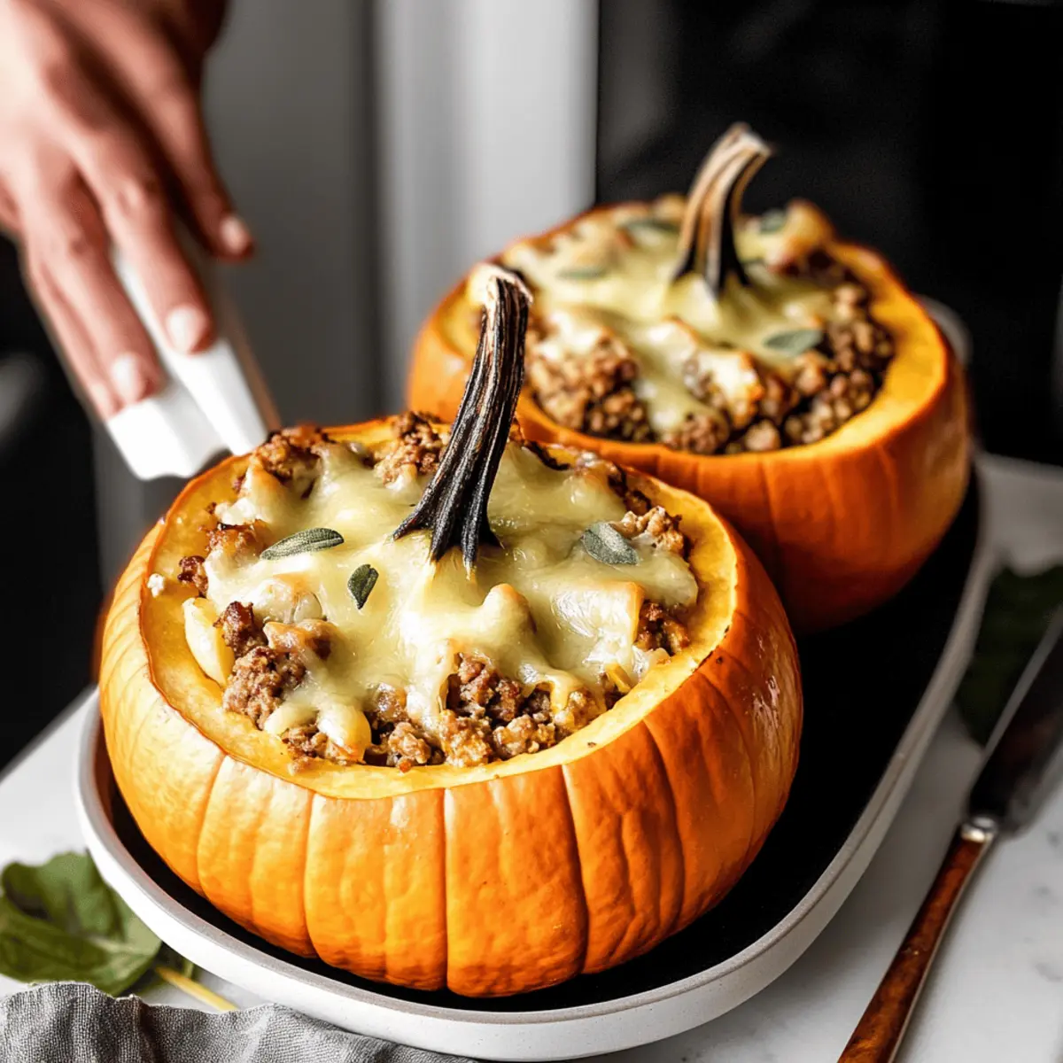Herb Variations: Feel free to switch fresh sage with thyme or rosemary. Experimenting with herbs can elevate the flavors in your stuffed pumpkins.