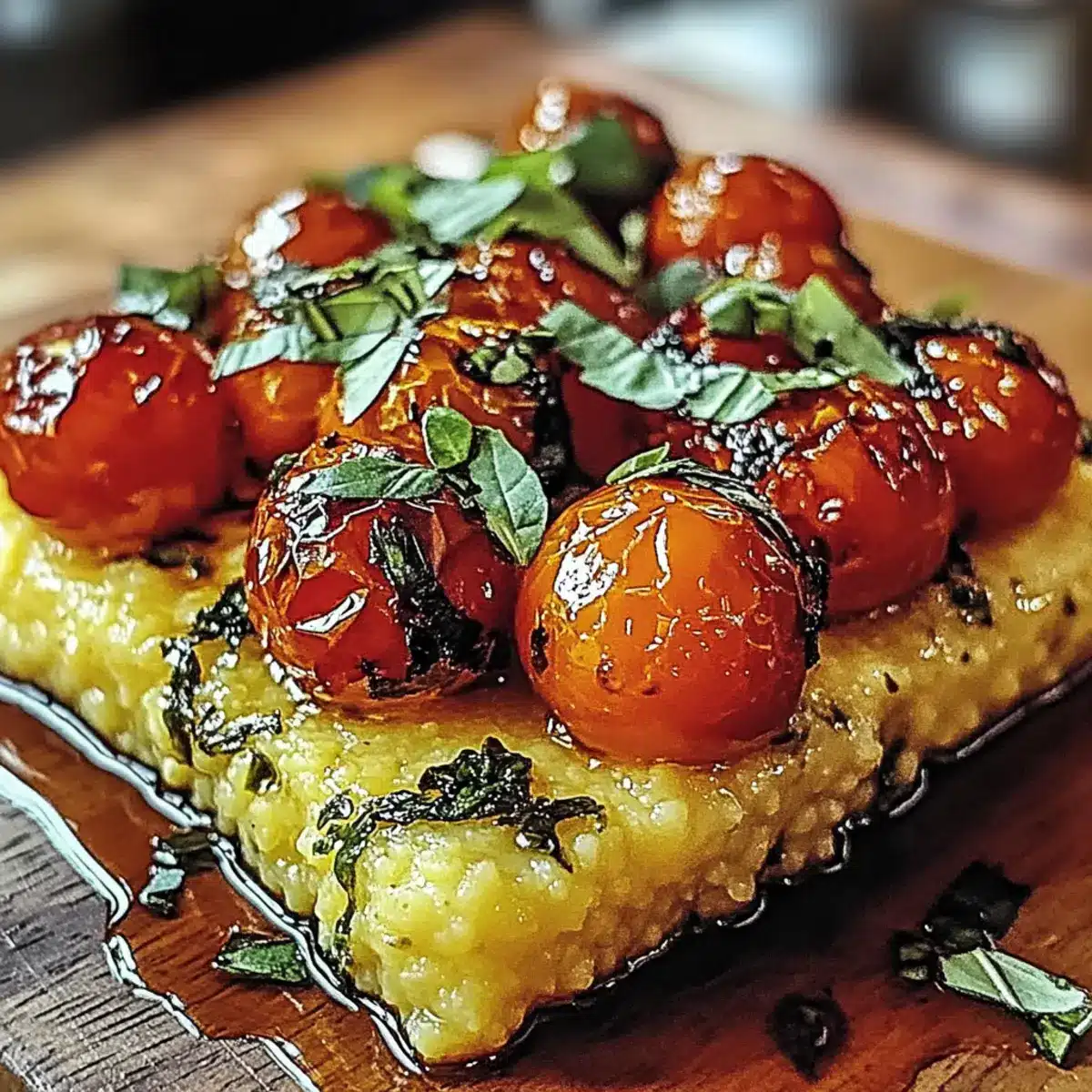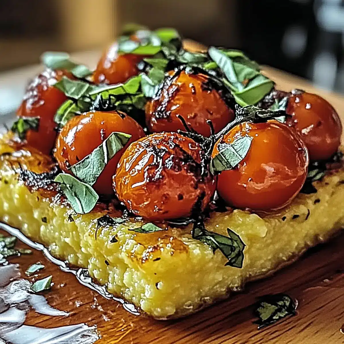 A Flavor Explosion: The creamy polenta beautifully contrasts with the sweet, blistered tomatoes, delivering a delightful balance in every bite.