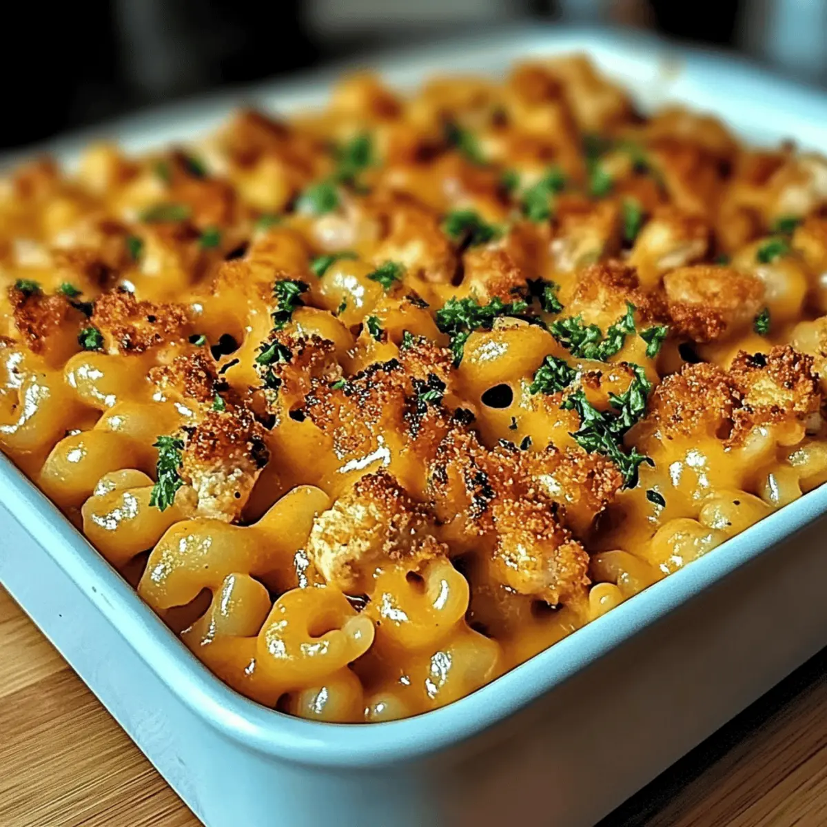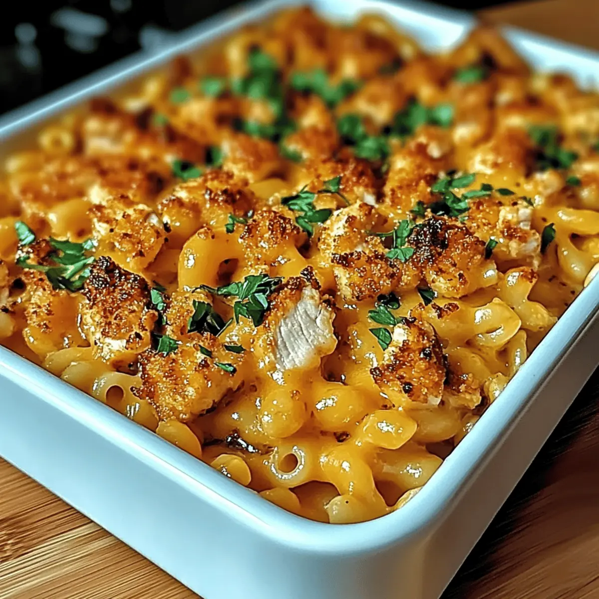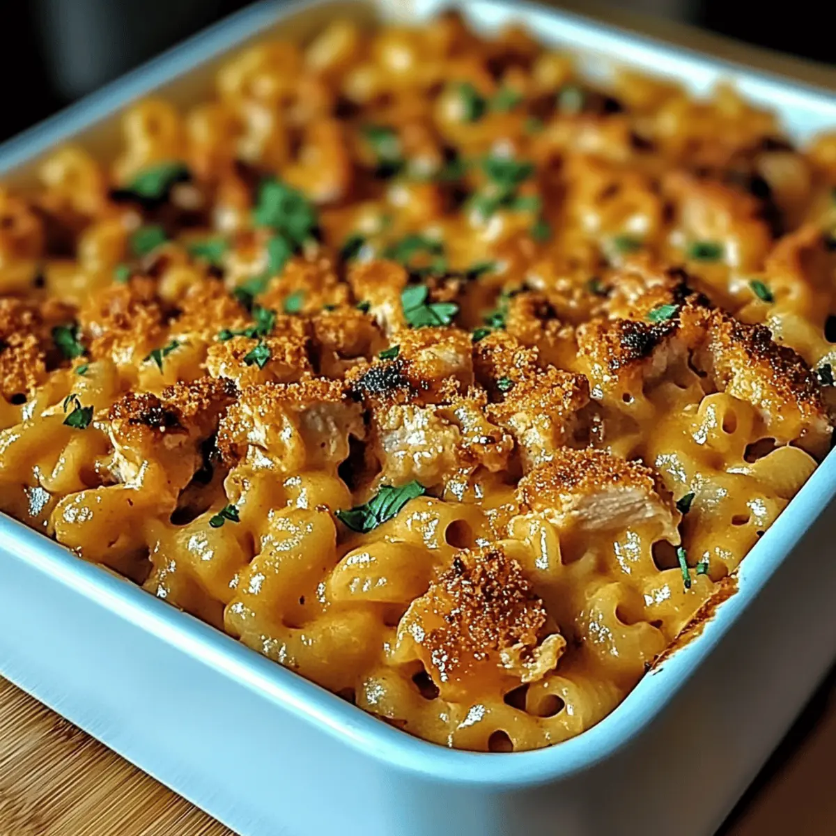 In a large mixing bowl, combine the cooked pasta, creamy cheese sauce, and the honey BBQ chicken. Gently stir until everything is evenly coated and integrated for that luscious Honey BBQ Chicken Mac & Cheese appeal. Serve immediately in bowls, garnished with freshly chopped parsley for a pop of color and flavor. Let it sit for about 10 minutes to meld the flavors beautifully.