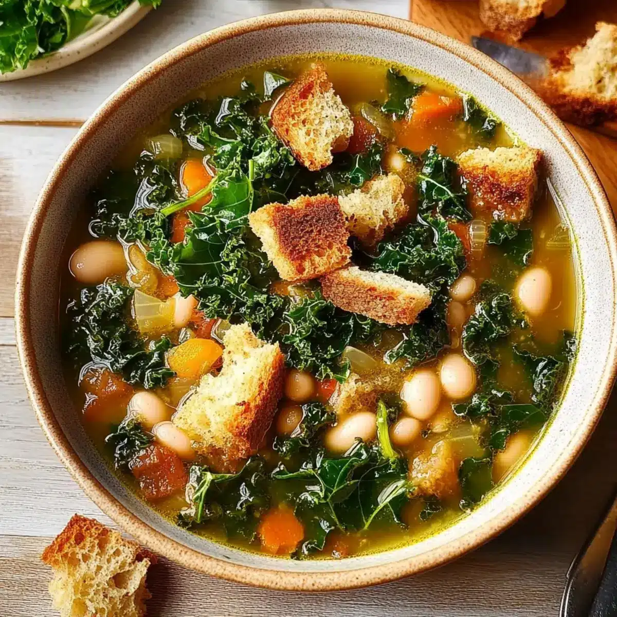 As the wind howls outside and I snuggle deeper into my favorite blanket, there’s nothing quite like the allure of a warm bowl of Kale Soup. This Hearty White Bean and Kale Soup, complete with crispy homemade croutons, offers a delightful embrace on chilly days. Packed full of nourishing ingredients, this satisfying dish is both plant-based and gluten-free, making it perfect for those looking to indulge without sacrificing health. The creamy texture, thanks to blended white beans, harmonizes beautifully with the bright notes of fresh lemon and earthy herbs like rosemary and thyme. This recipe isn’t just a winter warmer; it’s a high-protein, high-fiber comfort food that can easily feed a crowd or be saved for a cozy night in. So, are you ready to discover the joy of making your very own Kale Soup, complete with those irresistible croutons? Let’s dive in!