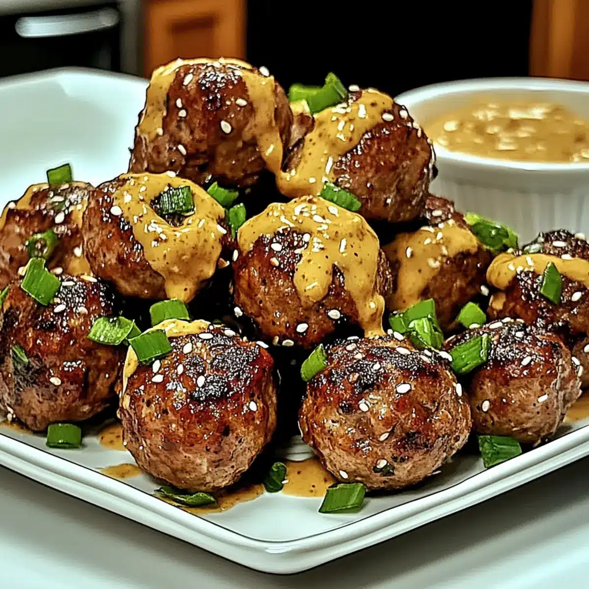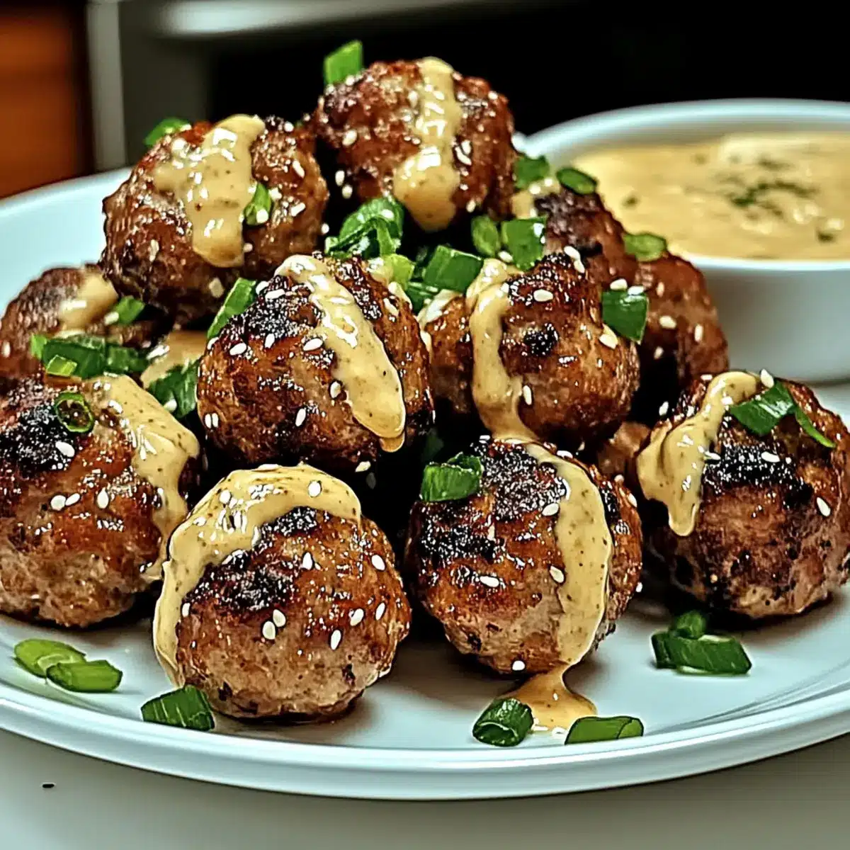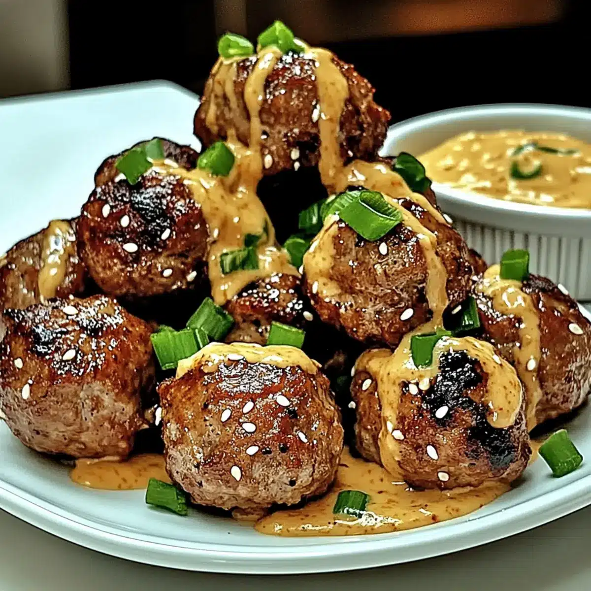 Savory Korean BBQ Meatballs with Creamy Spicy Dip Delight