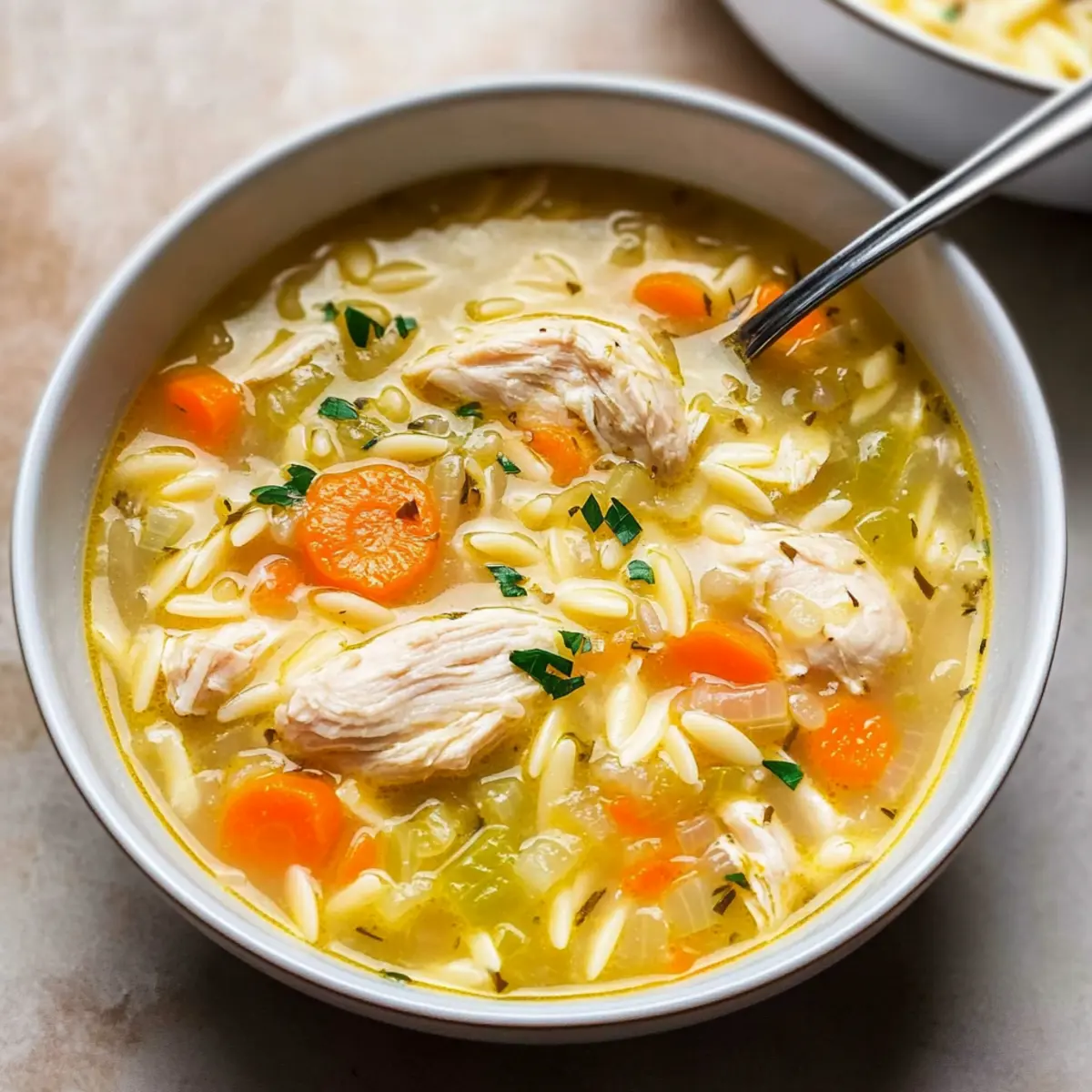 Satisfying Texture: The tender chicken and chewy orzo create a delightful mouthfeel that makes each spoonful a joy.
