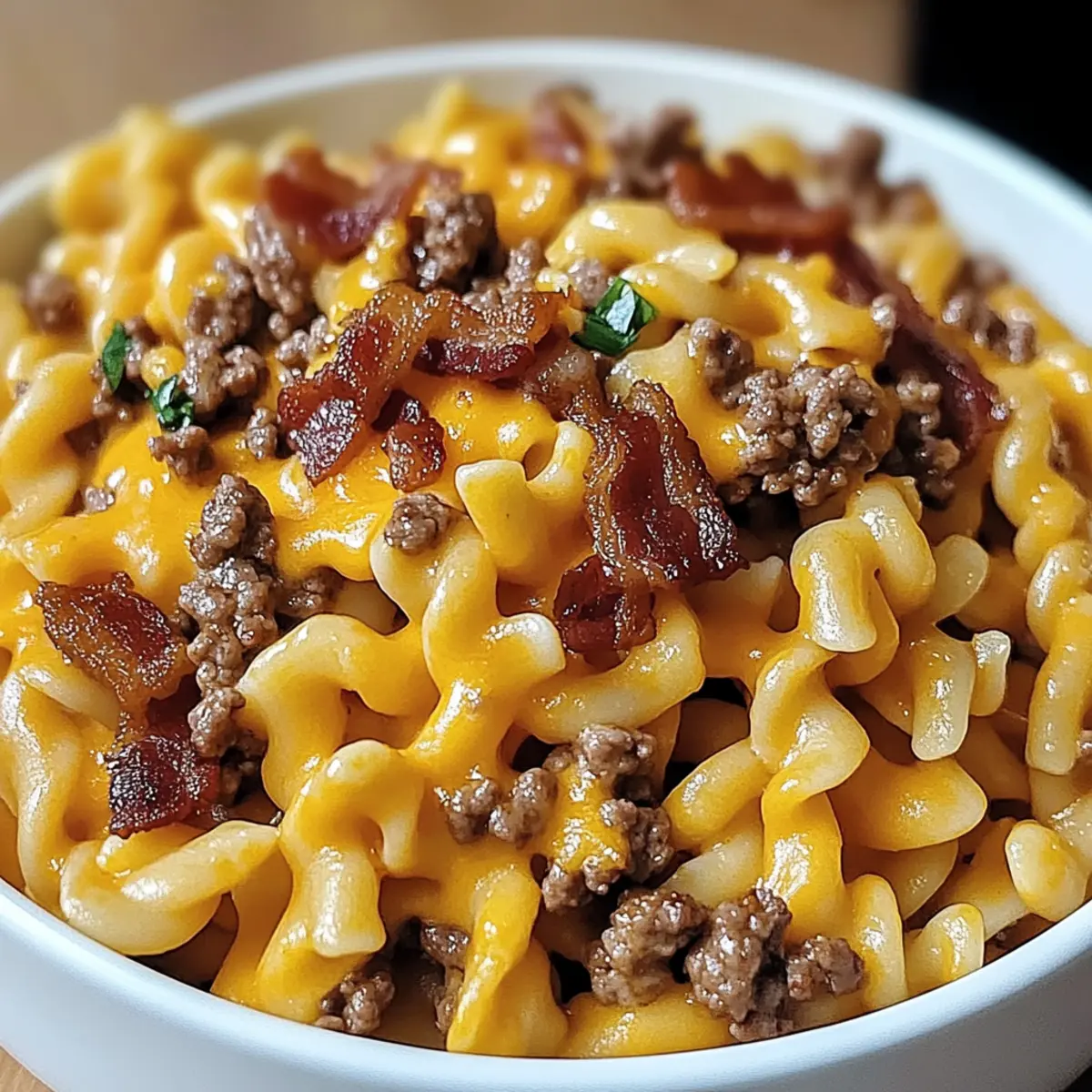 Comforting Flavors: The Loaded Bacon Cheeseburger Pasta combines rich, indulgent cheeseburger flavors with creamy pasta, making it a perfect comfort dish.