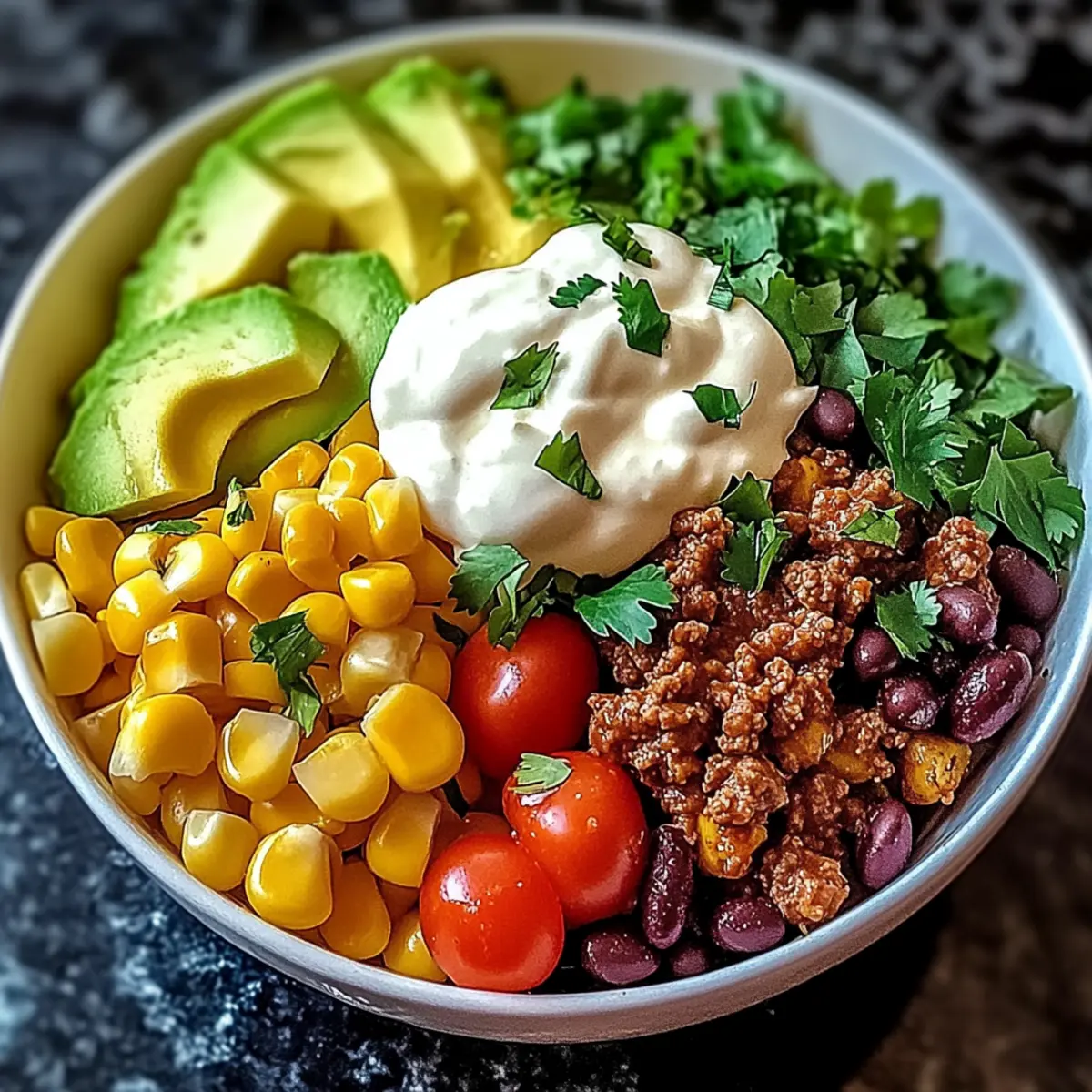 Fresh Salsa: A zesty, chunky salsa brings vibrant flavors to the party, perfect for drizzling over the taco bowl or enjoying with chips.