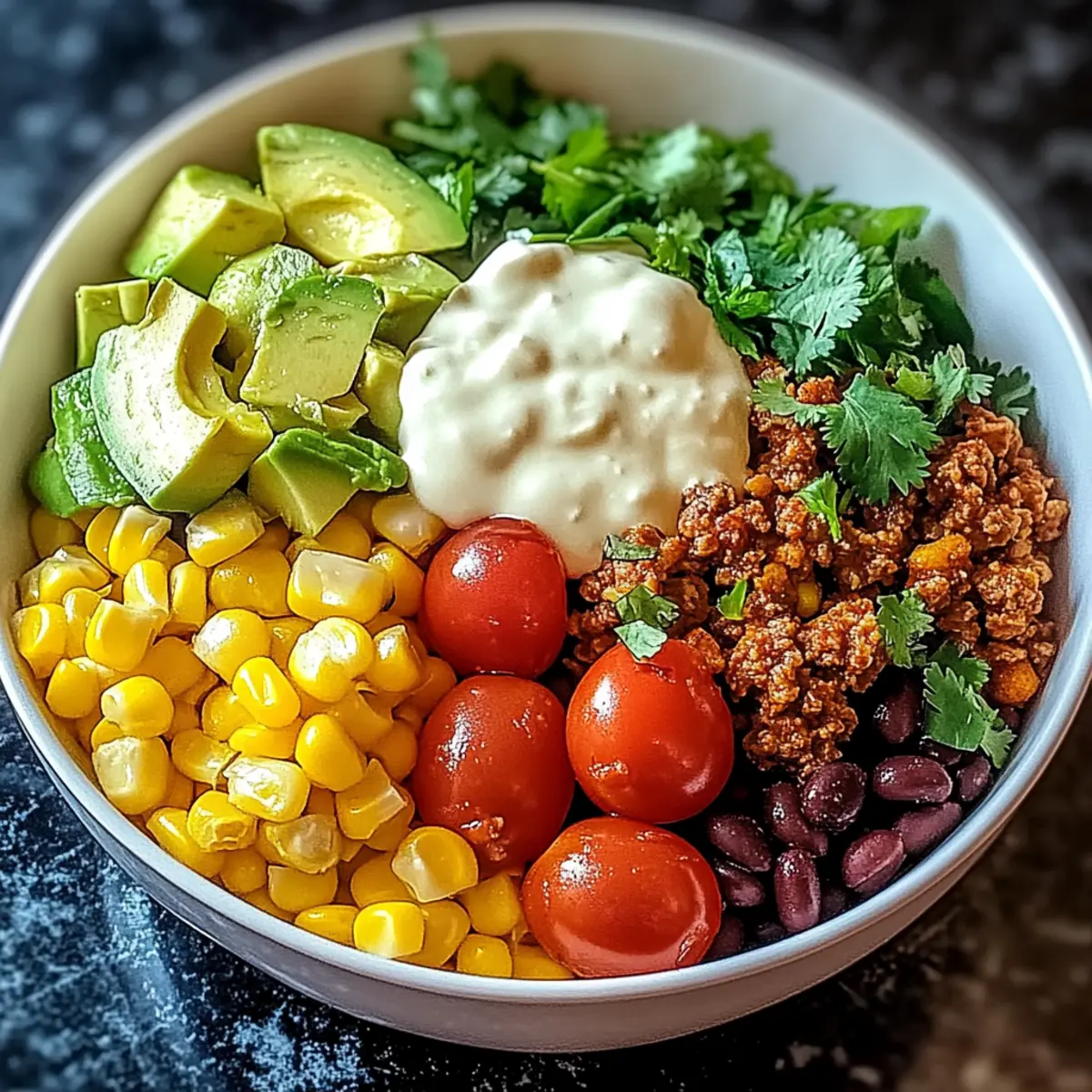 Creamy Dressing: Drizzle a zesty avocado crema over the top for a creamy texture that adds a decadent flourish to your loaded bowl.