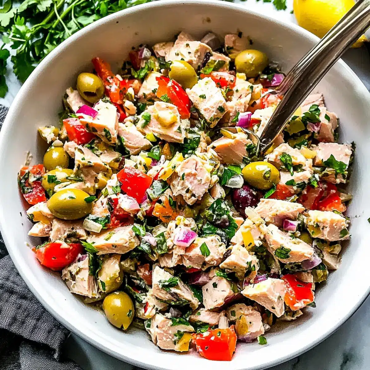 With a splash of lemon juice and a handful of fresh herbs, I transformed my weeknight meals and kicked the fast food habit to the curb. This Healthy Mediterranean Tuna Salad is not just quick to whip up—it’s a vibrant, flavorful dish that packs in protein without a hint of mayo. In just 10 minutes, you can create a satisfying and balanced meal that will leave you feeling energized, without compromising on taste. Featuring briny olives, crunchy cucumber, and zesty roasted peppers, this salad is the perfect way to embrace wholesome ingredients while enjoying a taste of the Mediterranean. Are you ready to dive into a bowl of freshness that’s as good for the body as it is for the soul?