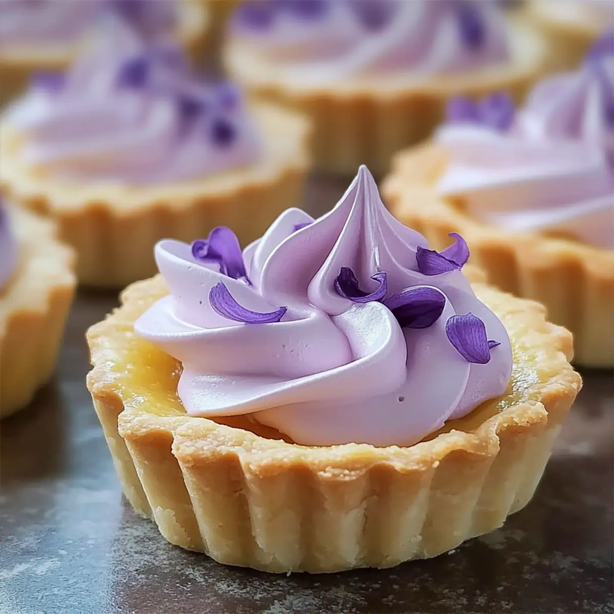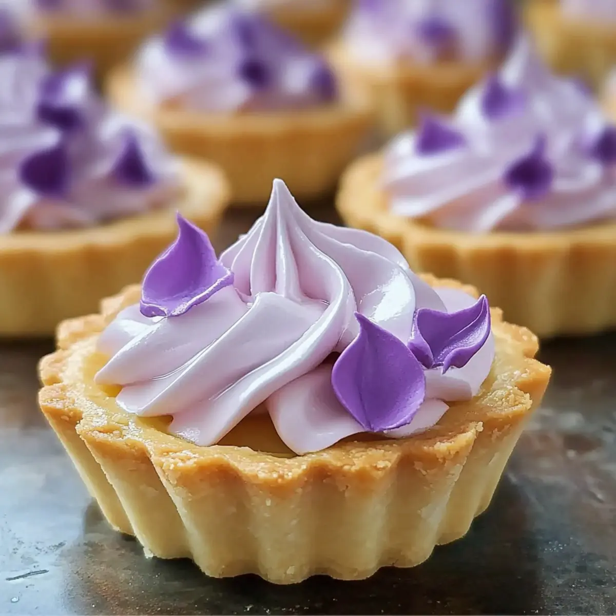 Artful Elegance: Topped with delicate lilac meringue, these tarts not only taste exceptional but also serve as stunning centerpieces for your table.