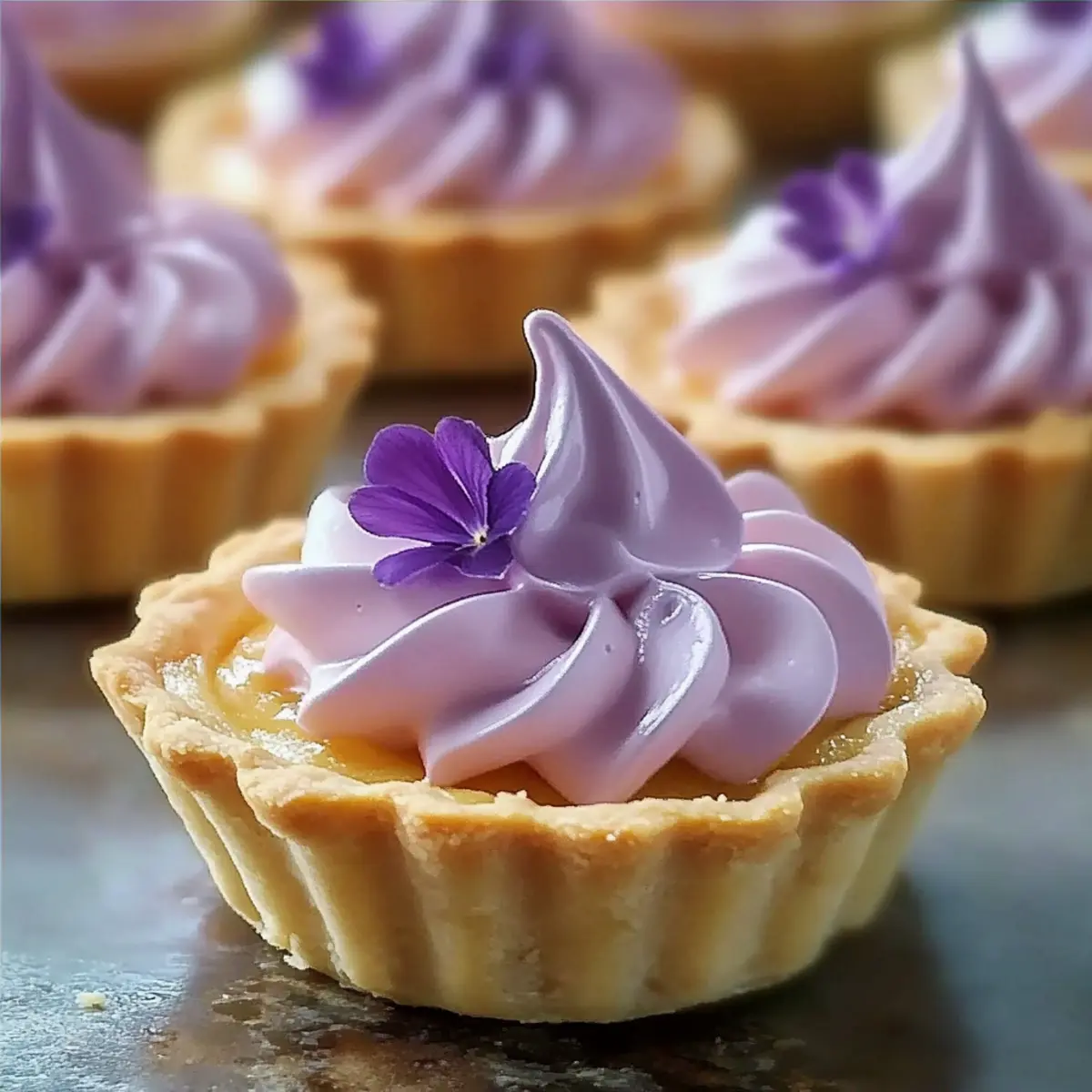 - Once the meringue is ready, pipe it onto the chilled mini lemon tarts in whimsical swirls. Use a kitchen torch to carefully toast the tips of the meringue until they reach a golden hue, creating a stunning visual appeal. Finally, garnish with edible lilac petals or dried lavender for a delightful touch that complements the flavor of your Mini Lemon Tart with Lilac Meringue.