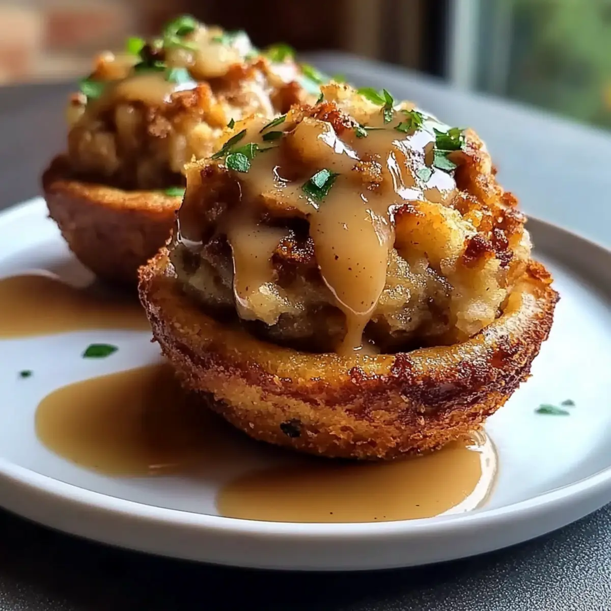 Now, let’s turn those leftovers into something magical with these Muffin Tin Turkey & Stuffing Cups with Gravy!