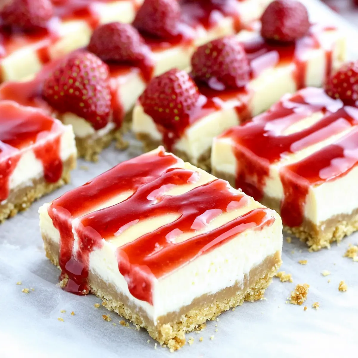 These Easy Philadelphia Cheesecake Bars are perfect for busy home cooks looking to save time! You can prepare the graham cracker crust up to 24 hours in advance and store it in the fridge wrapped tightly to maintain its crunch. Additionally, the cheesecake filling can be made a day ahead and kept in the refrigerator until you’re ready to bake—just be sure to cover it to avoid any drying out. The finished bars stay fresh for up to 3 days in an airtight container. To maintain their creamy texture, avoid adding the strawberry topping until just before serving. This allows you to enjoy these delicious bars with minimal fuss and maximum flavor!