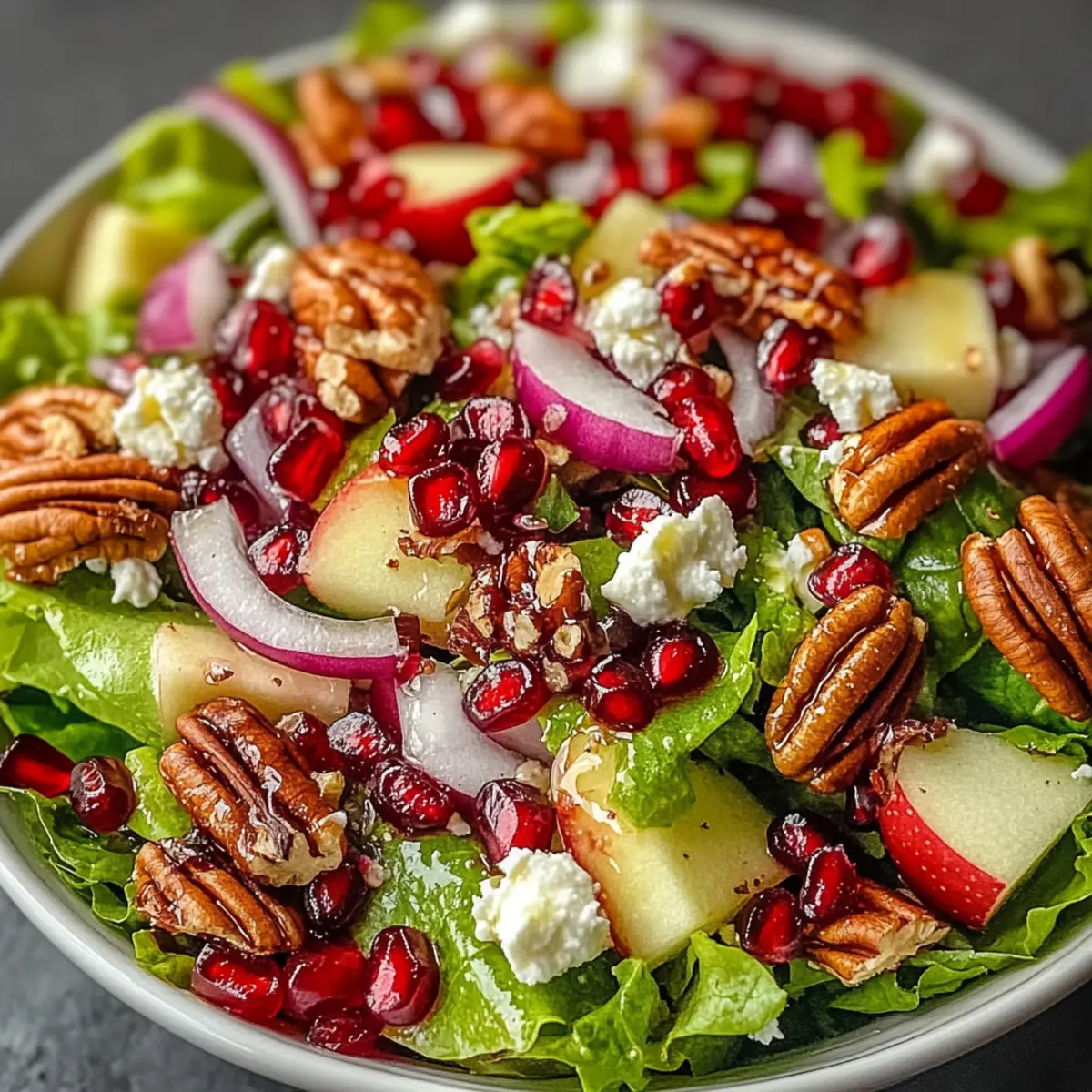 • Dive into the flavorful world of this Pomegranate Pecan Salad Vinaigrette with fresh ingredients that will elevate your salad game!