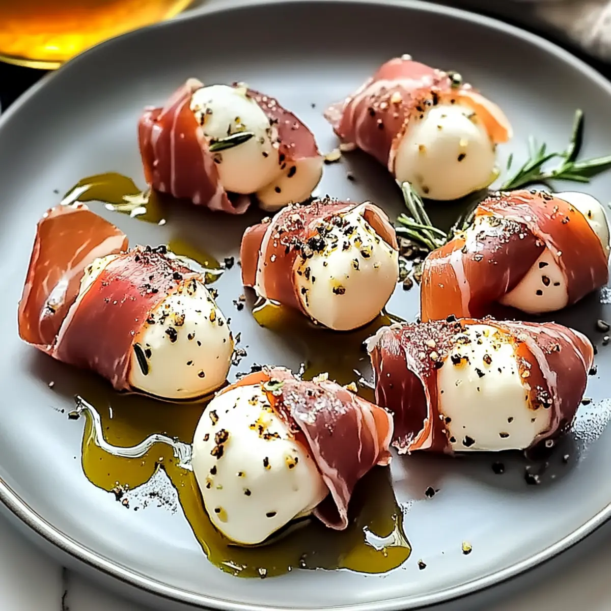 - Mozzarella Balls – Offers a creamy, mild flavor; the ideal melty filling that balances the crunchy exterior of the prosciutto.